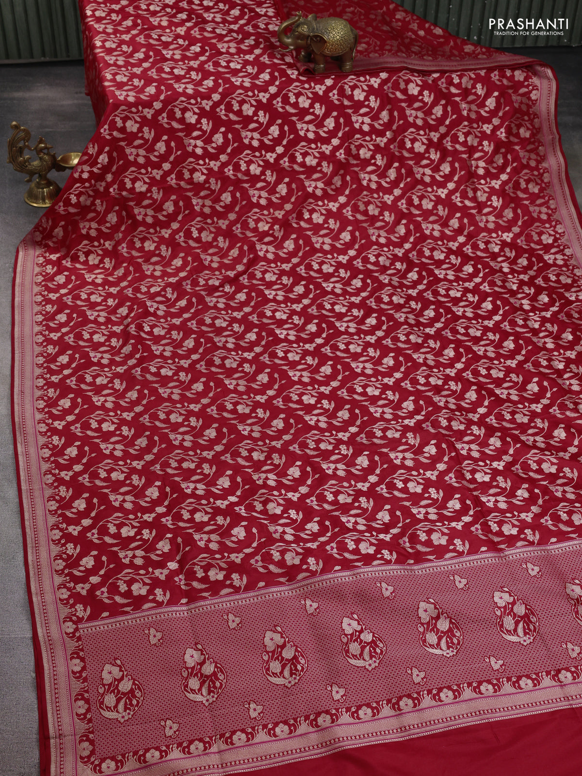 Banarasi uppada silk saree red with allover zari woven brocade weaves and zari woven border