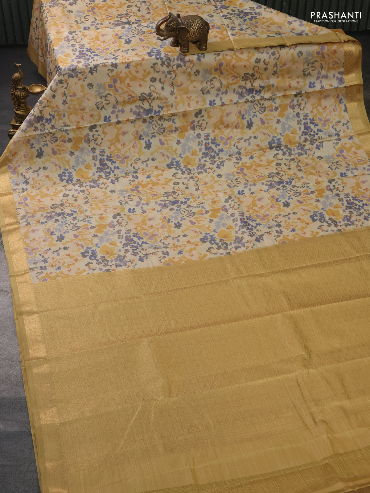 Bangalori semi silk saree beige and sandal with allover ikat weaves and zari woven border