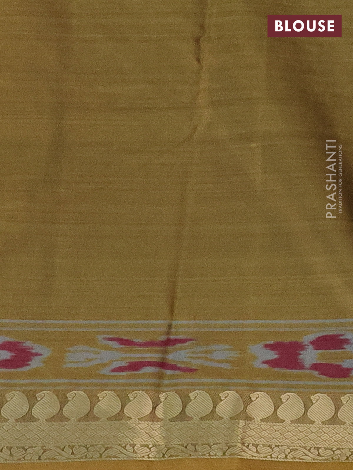 Bangalori semi silk saree rust shade pink and mehendi green with allover ikat weaves and zari woven border