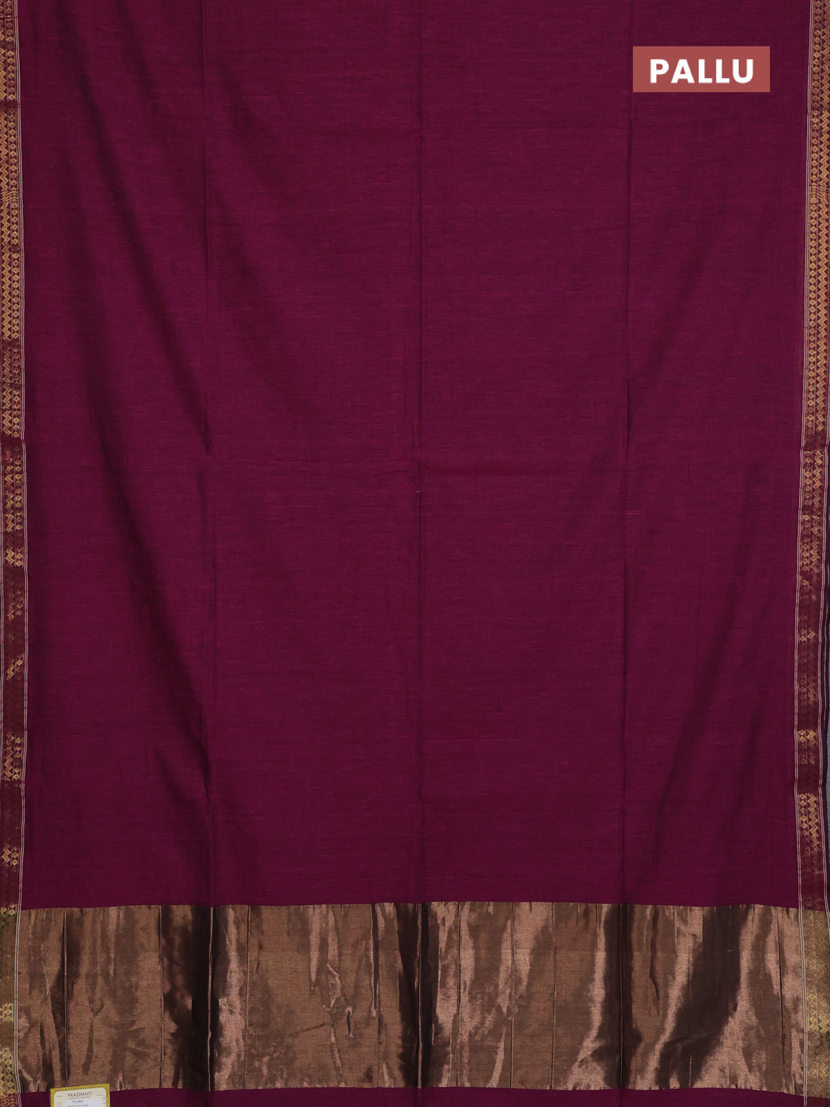 Bengal soft cotton saree dark magenta pink and blue with plain body and zari woven border