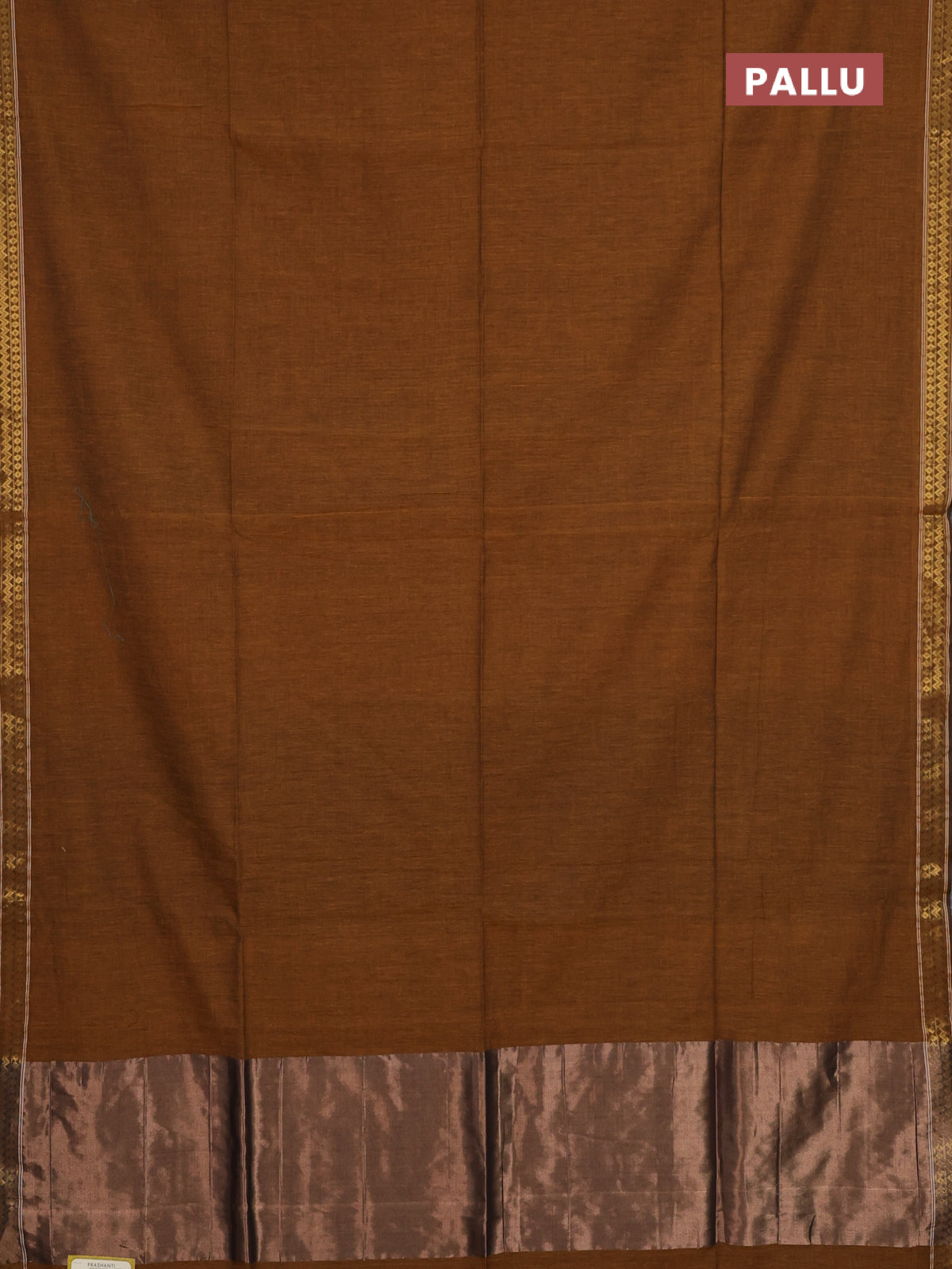 Bengal soft cotton saree dark mustard and green with plain body and zari woven border