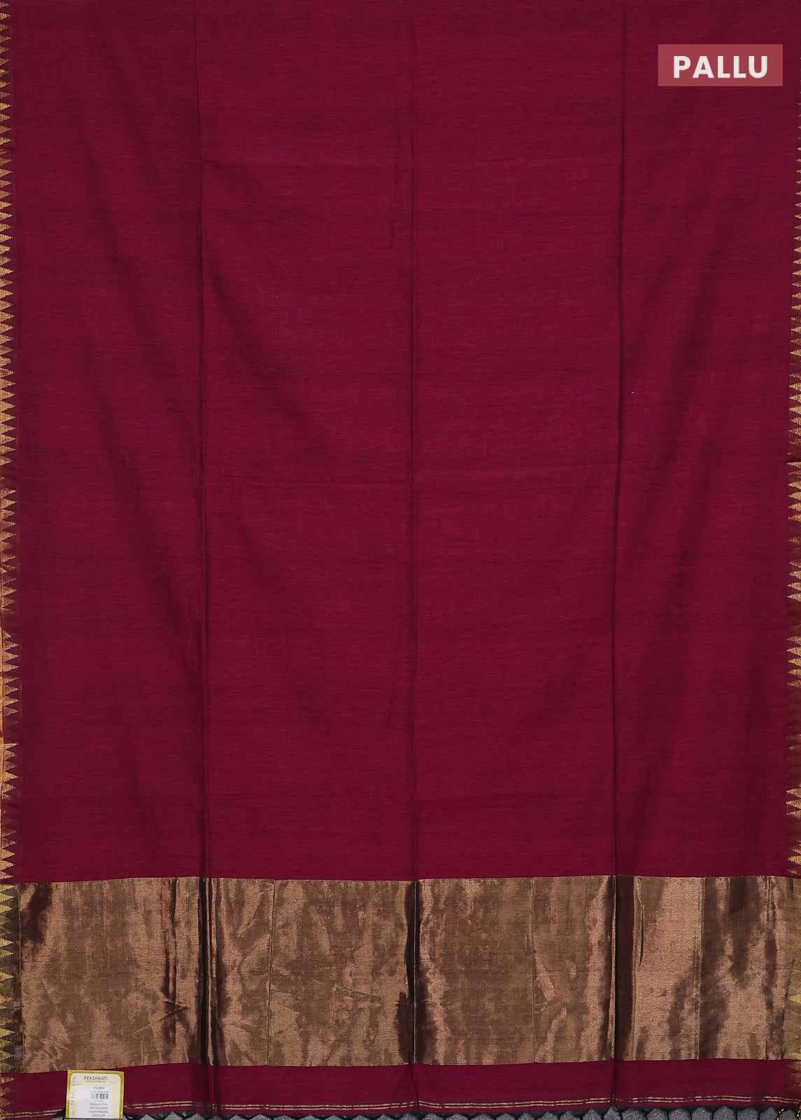Bengal soft cotton saree magenta pink and peacock blue with plain body and zari woven border