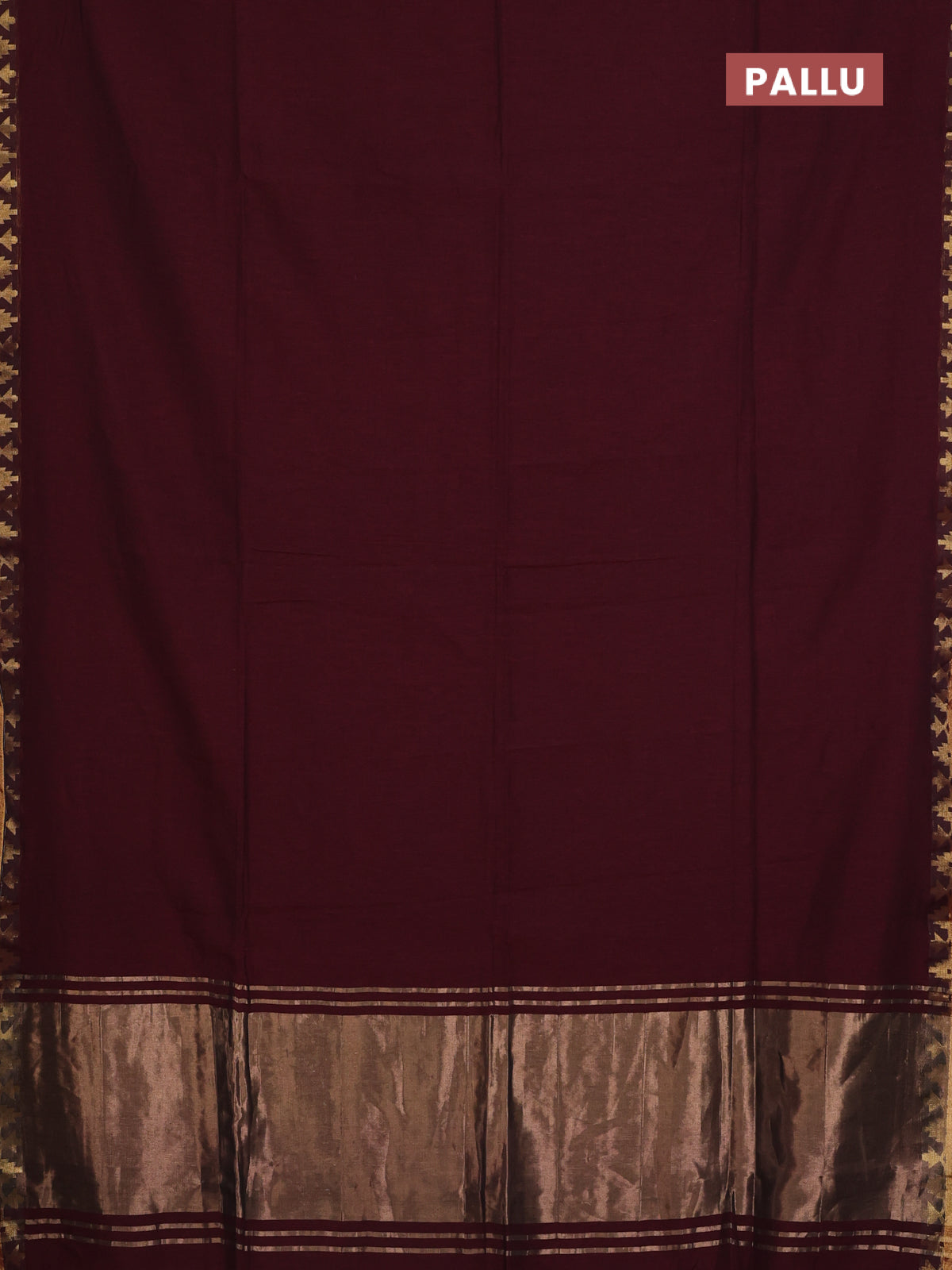 Bengal soft cotton saree maroon and red with plain body and zari woven border