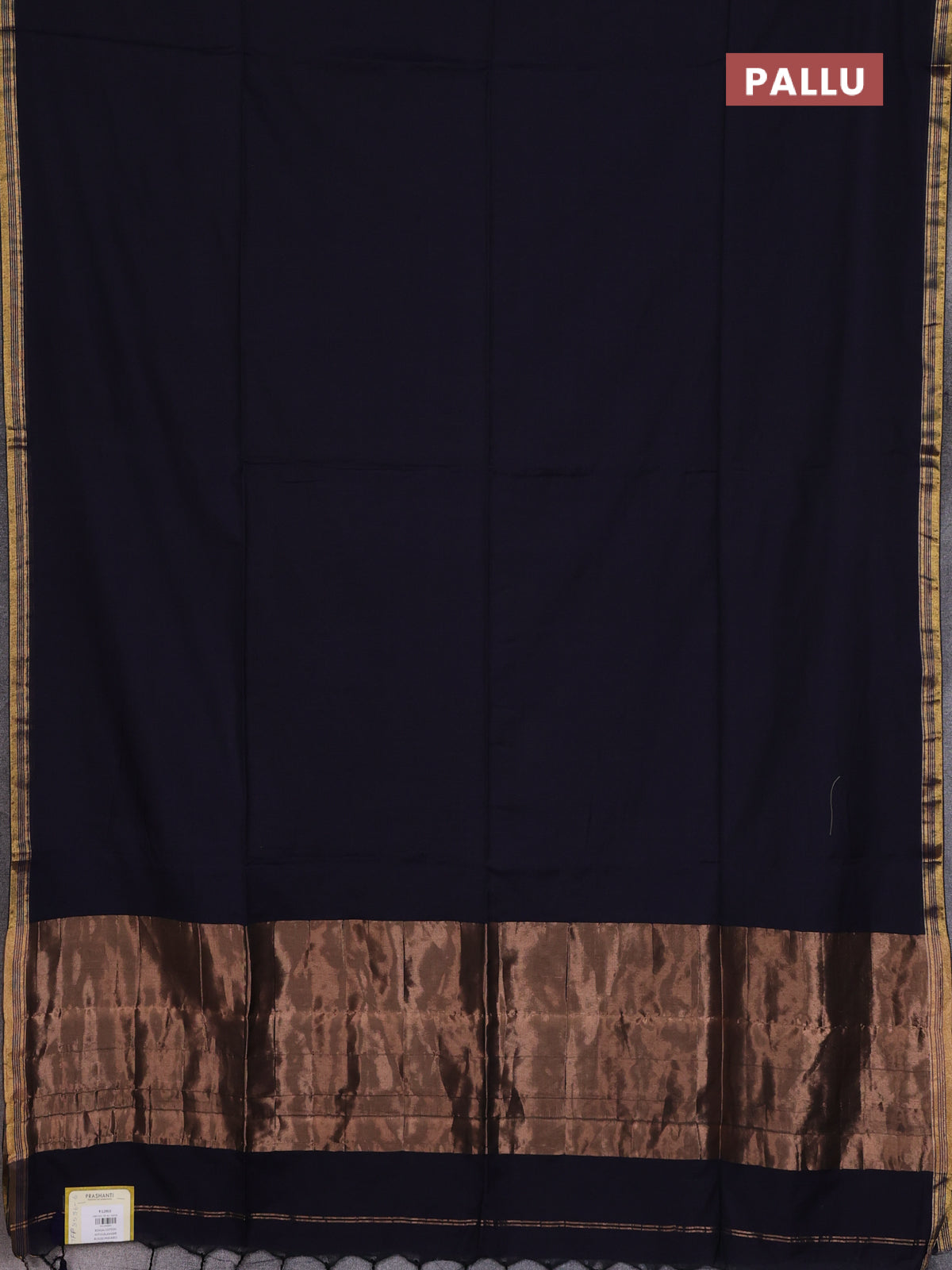 Bengal soft cotton saree navy blue and mehendi green with plain body and zari woven border