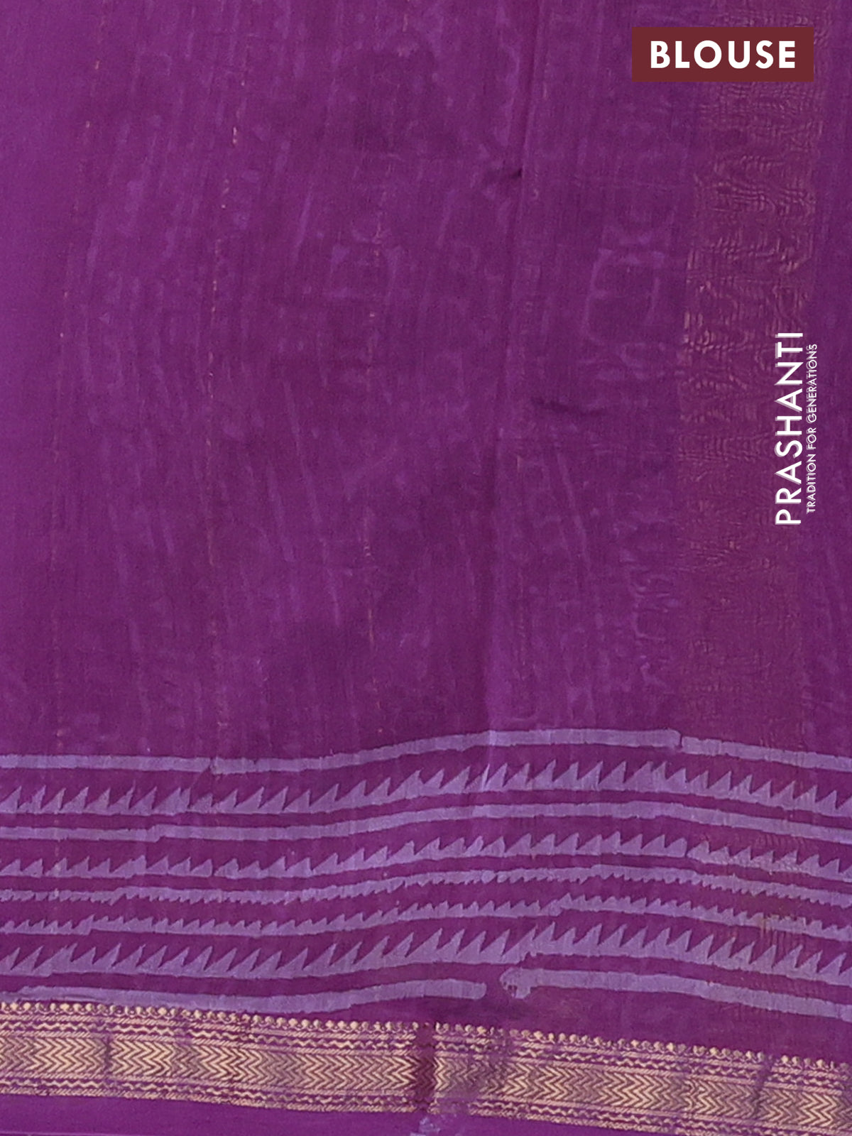 Chanderi bagru saree purple with allover prints and mageshwari border