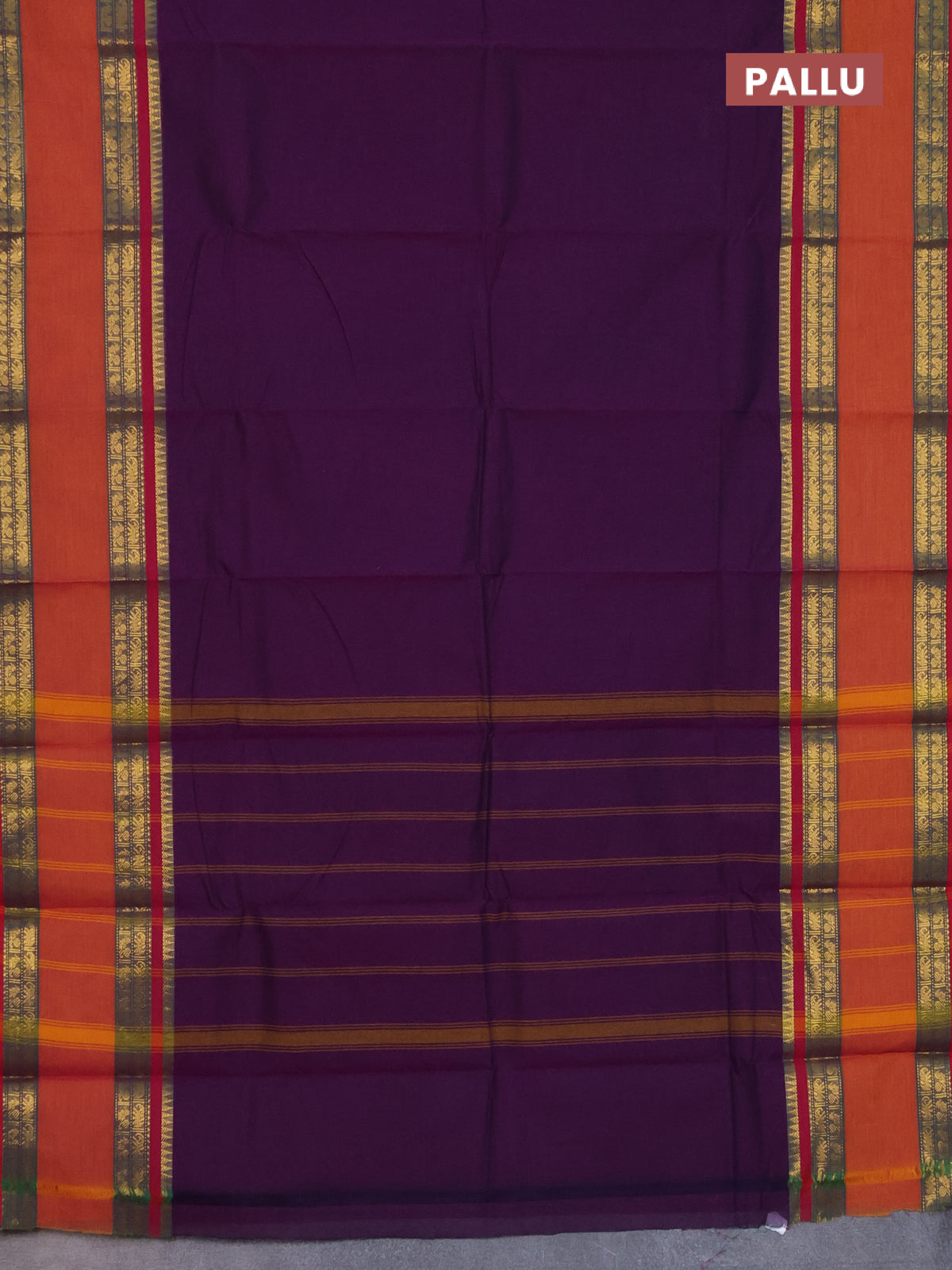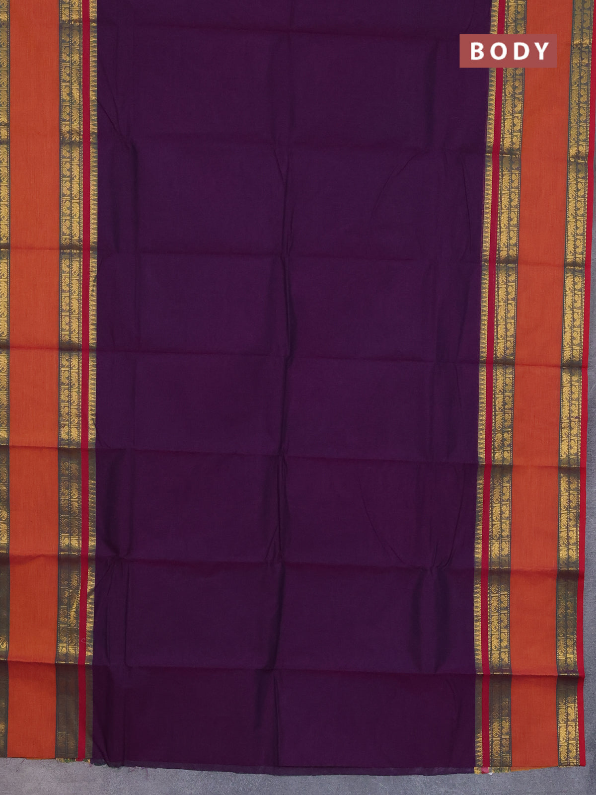 Chettinad cotton saree deep voilet and dual shade of mustard with thread woven buttas and rattapet zari woven border