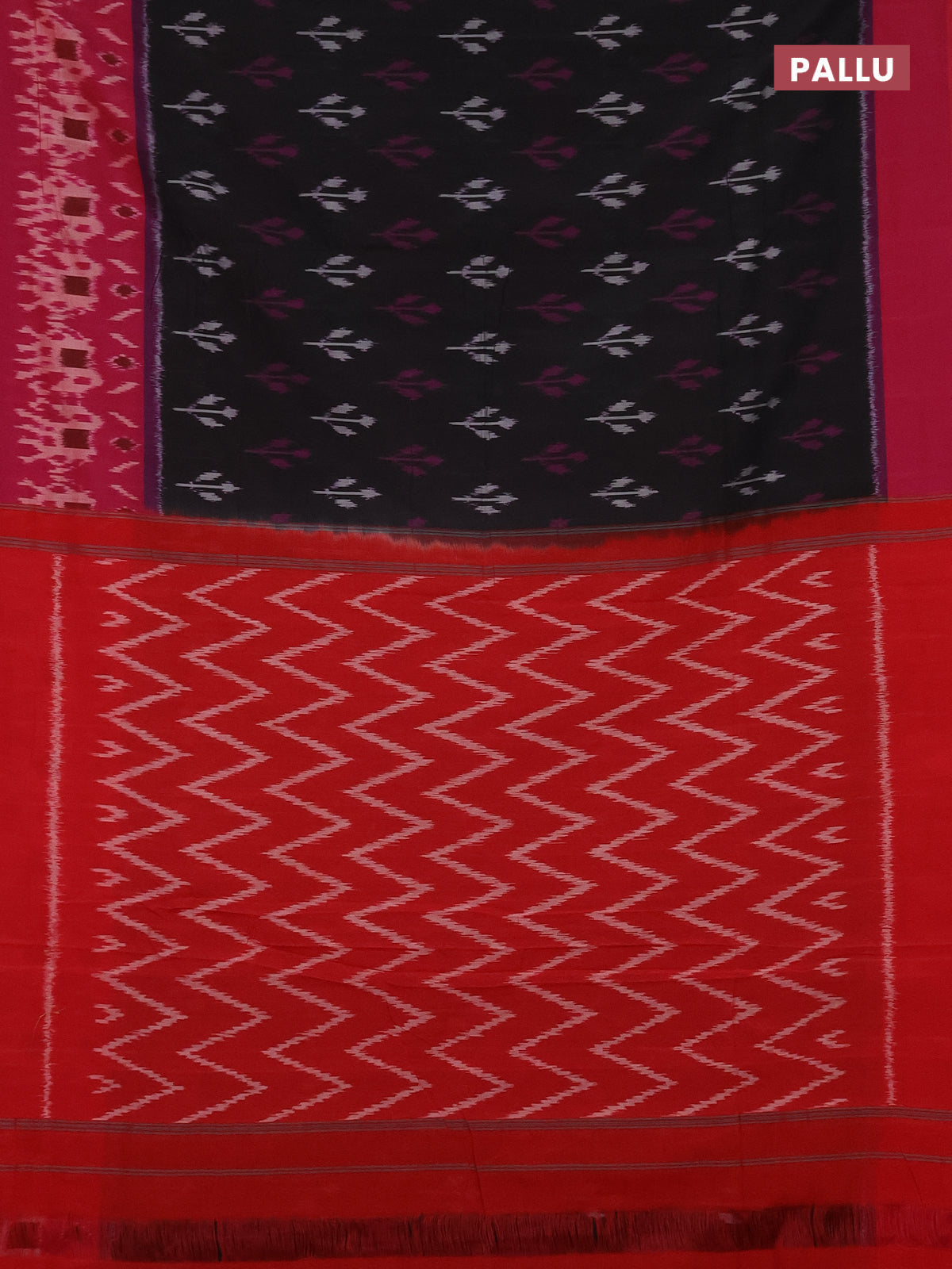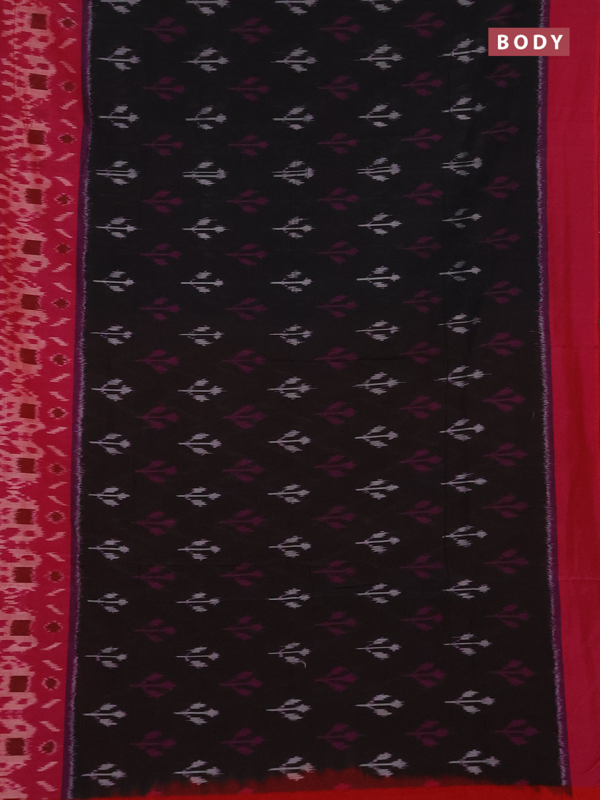 Ikat cotton saree black and red with allover ikat butta weaves and ikat style border
