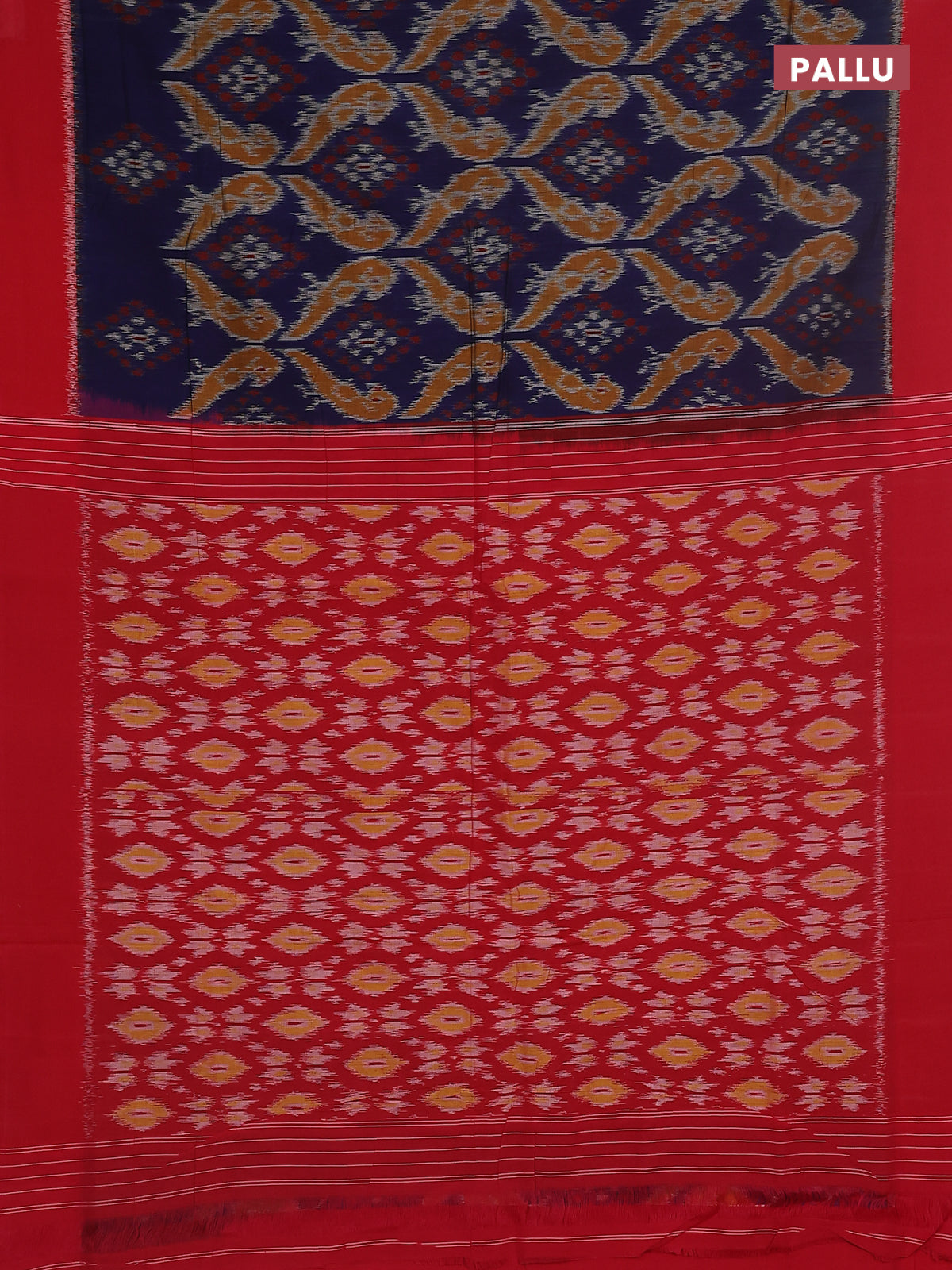 Ikat cotton saree blue and red with allover ikat weaves and simple border