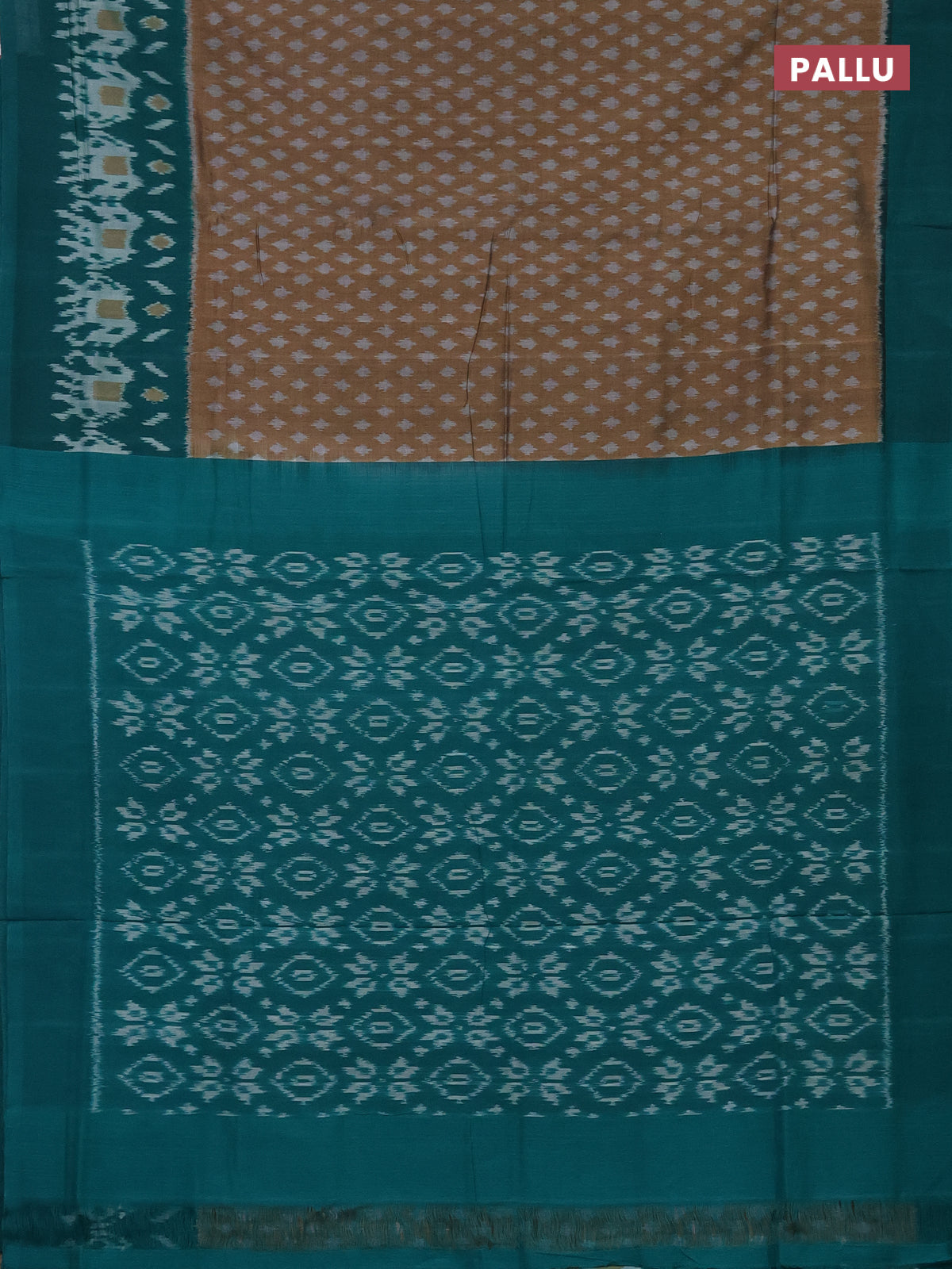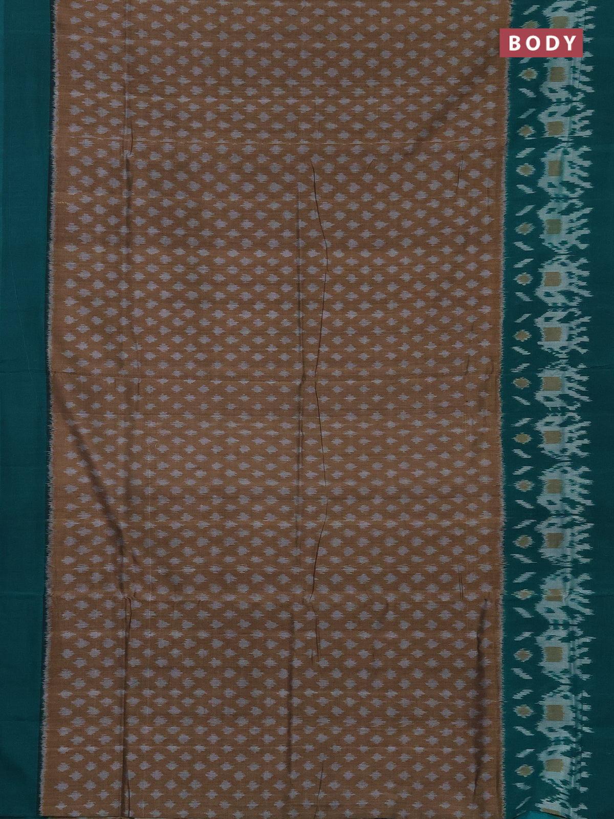 Ikat cotton saree dark sandal and teal green with allover ikat butta weaves and long ikat style border