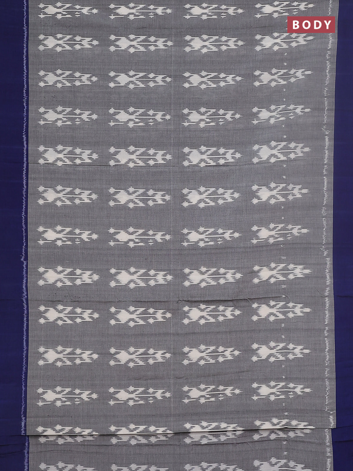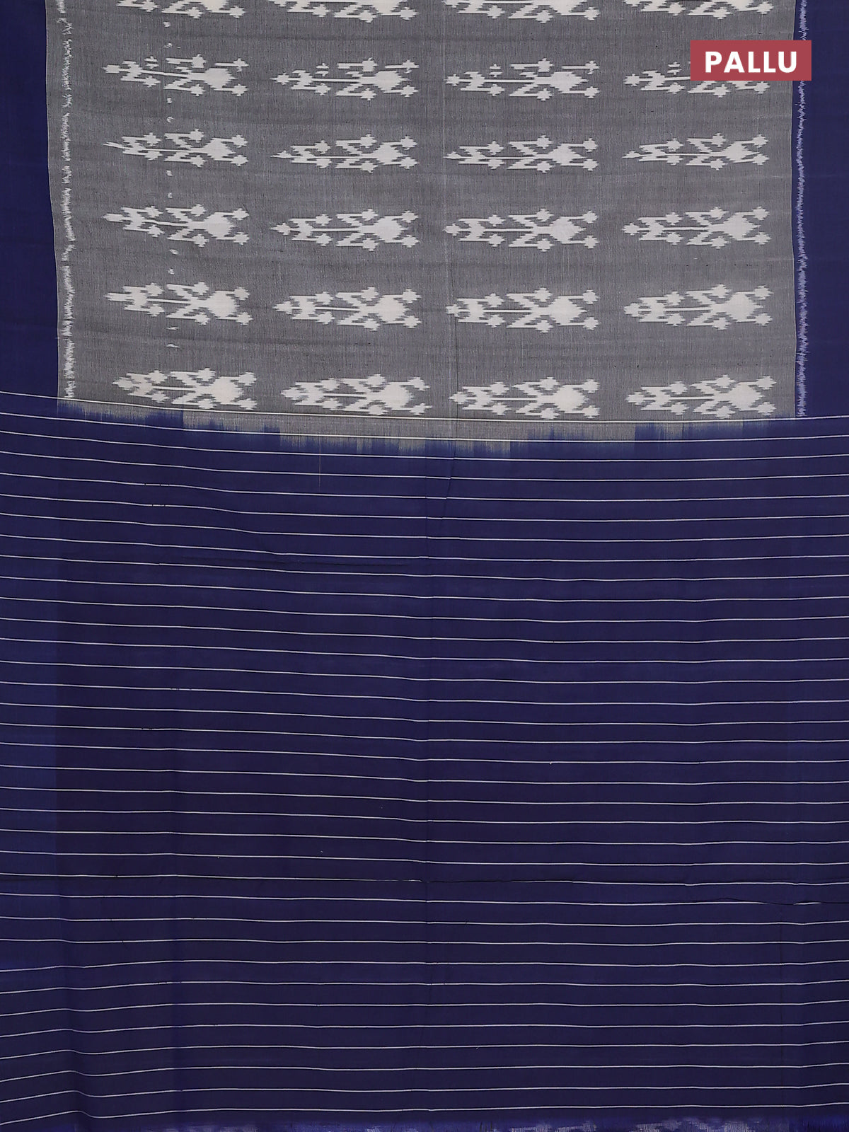Ikat cotton saree grey and blue with allover ikat butta weaves and simple border