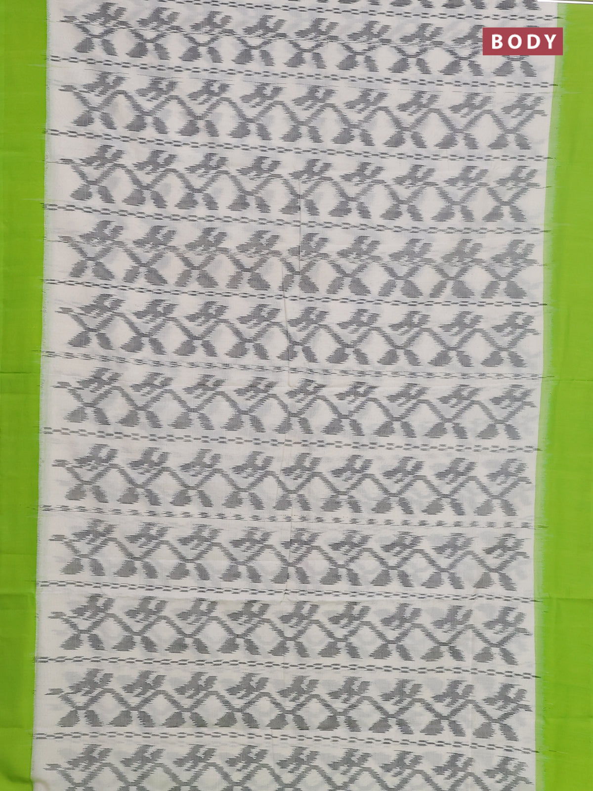 Ikat cotton saree off white and light green with allover ikat weaves and simple border
