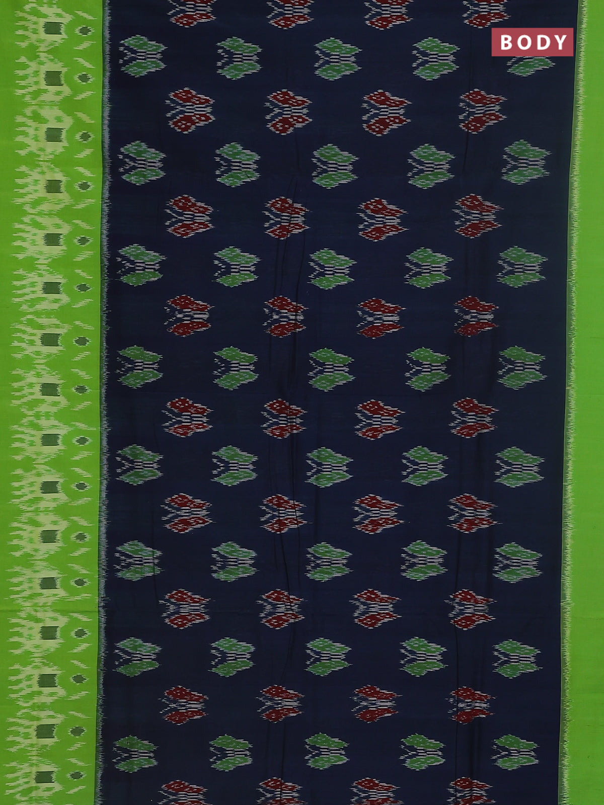 Ikat cotton saree peacock blue and light green with allover ikat butta weaves and long ikat style border