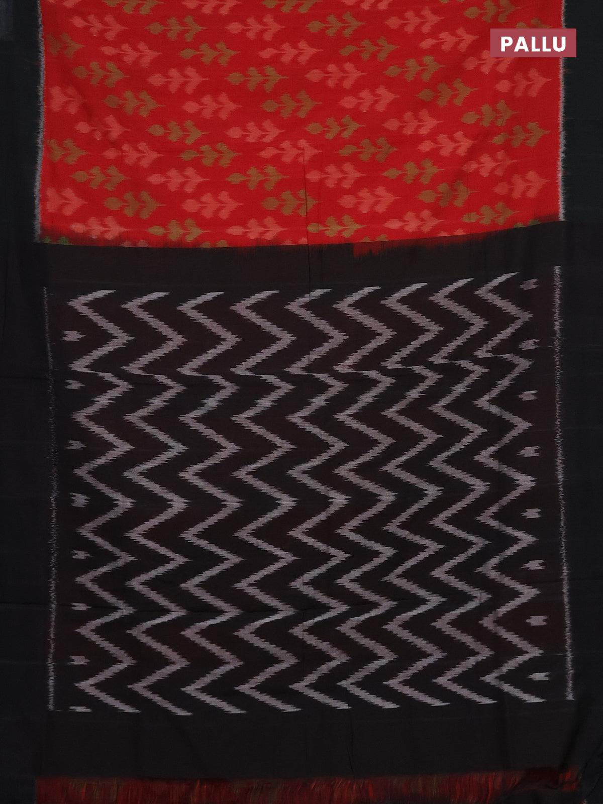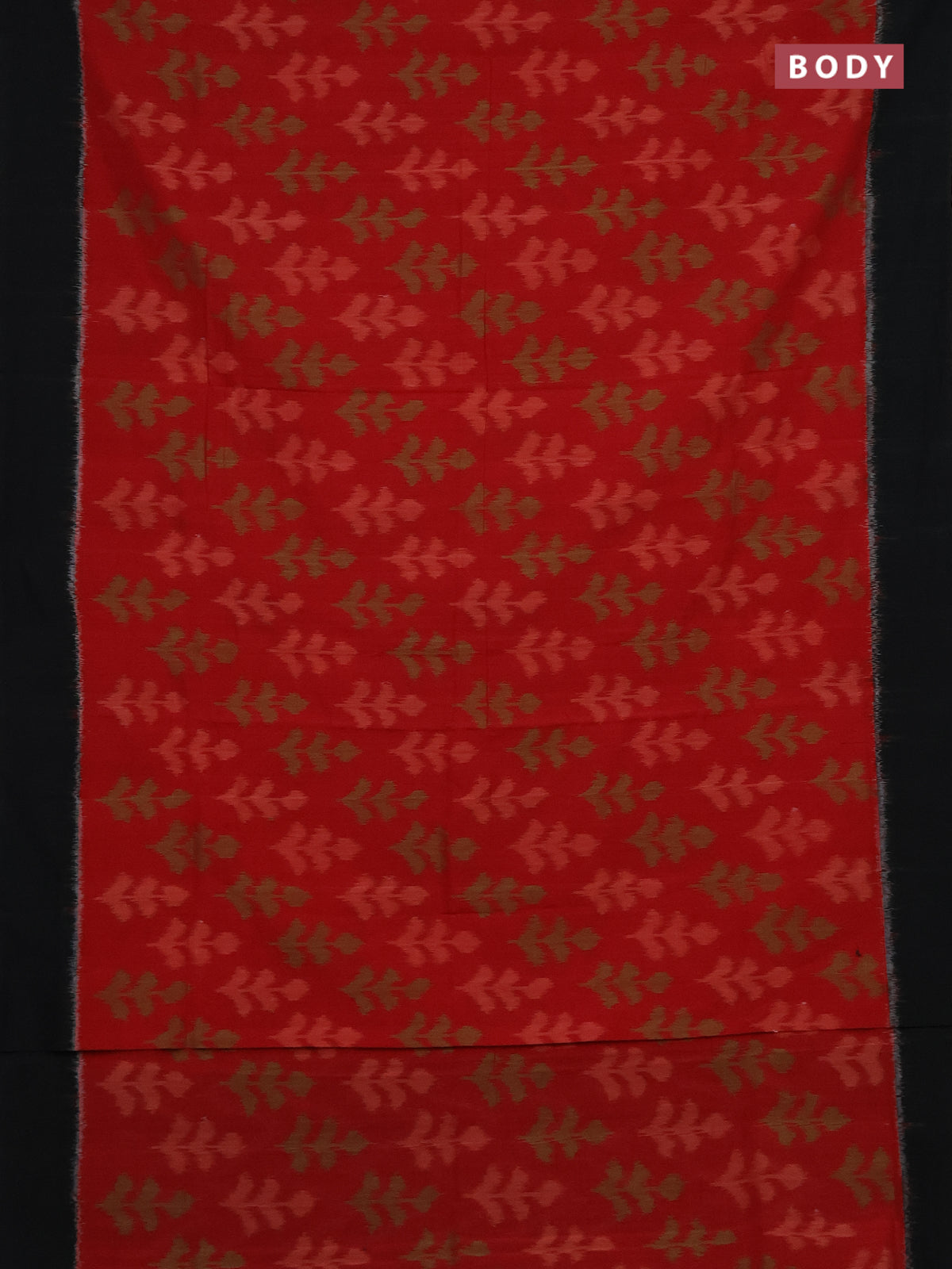 Ikat cotton saree red and black with allover ikat butta weaves and simple border