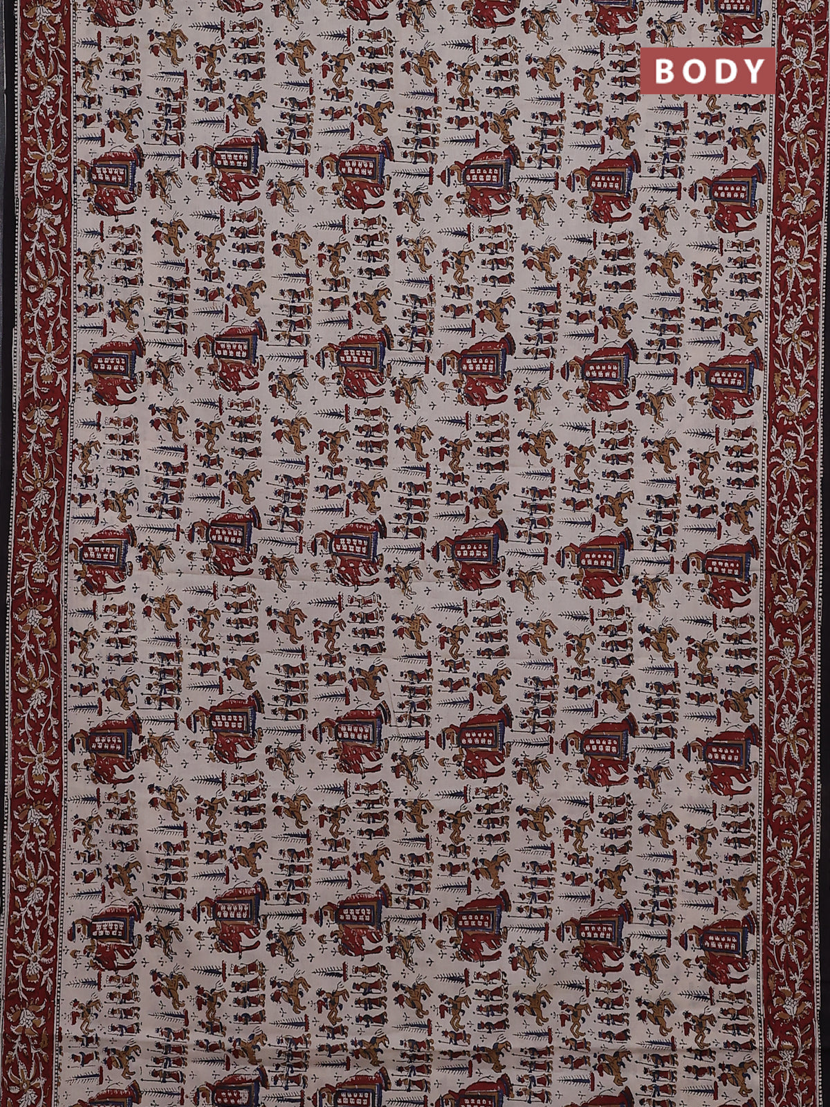 Jaipur cotton saree beige and maroon with allover kalamkari prints and printed border