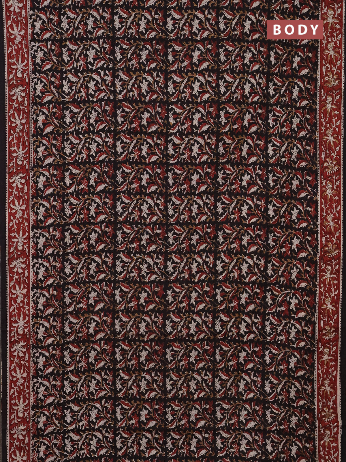 Jaipur cotton saree black and maroon black with allover kalamkari prints and printed border