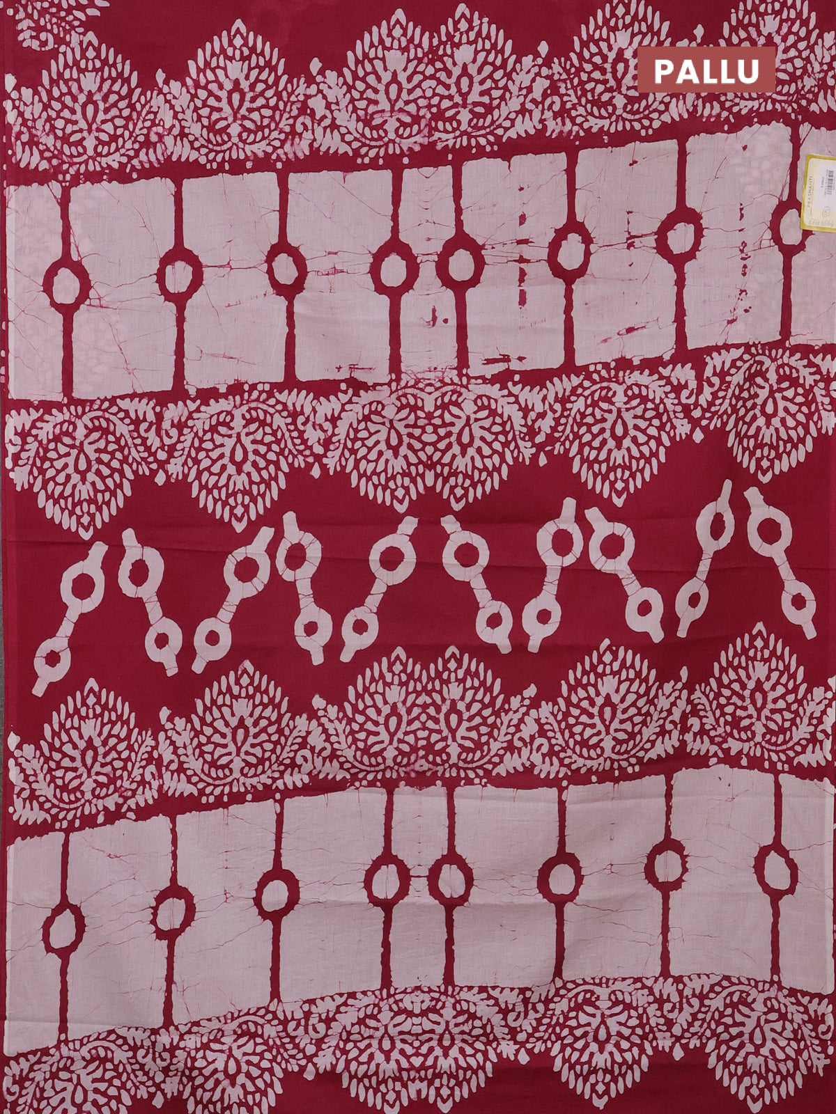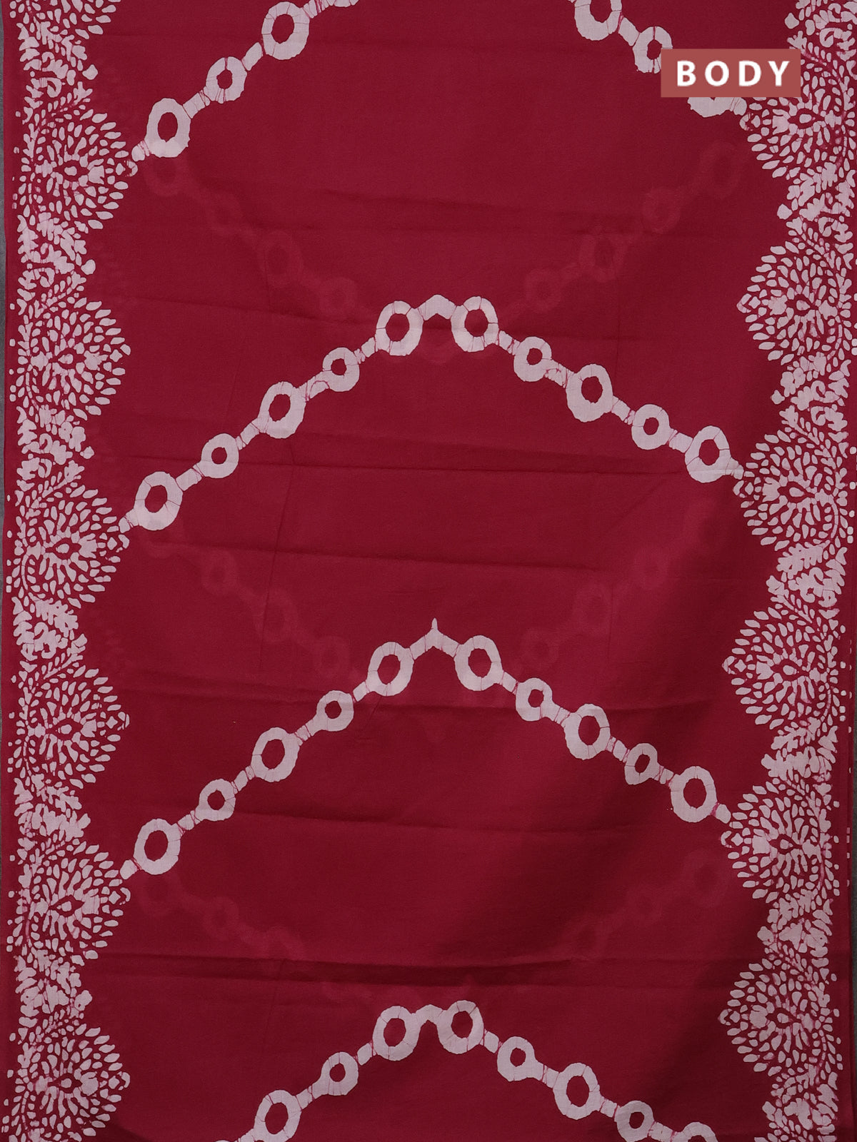 Jaipur cotton saree marron and off white with allover batik prints in borderless style