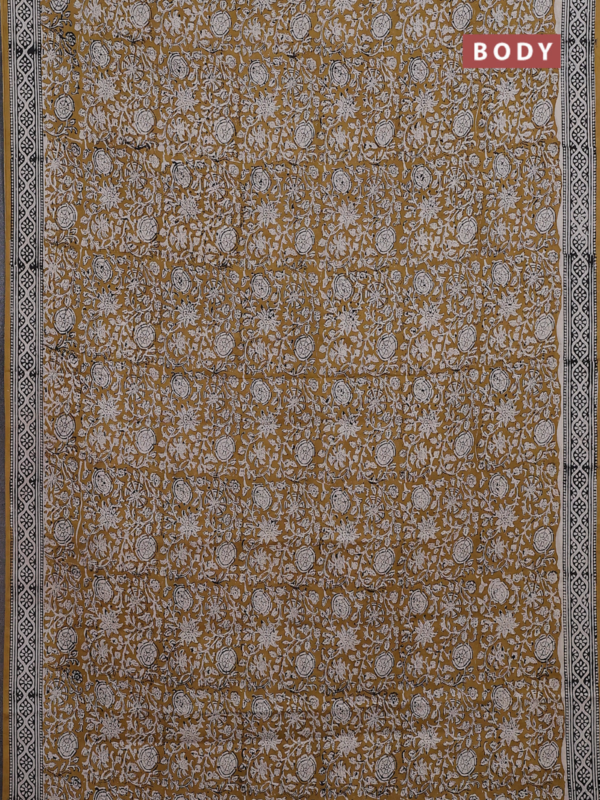 Jaipur cotton saree mustard and black with allover kalamkari prints and printed border