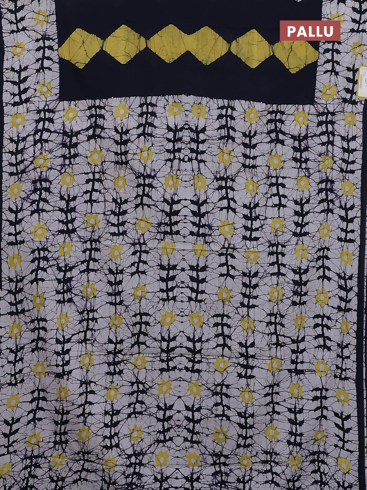 Jaipur cotton saree navy blue and off white with allover batik prints and printed border