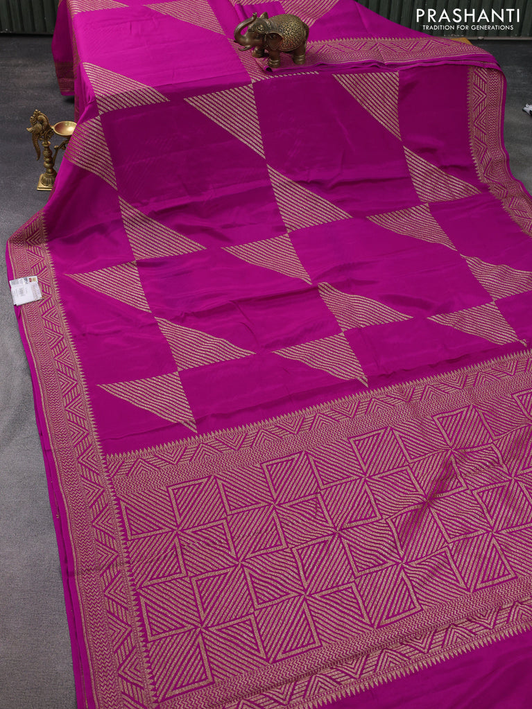 Banarasi crepe saree magenta pink with allover thread & zari geometric weaves and woven border