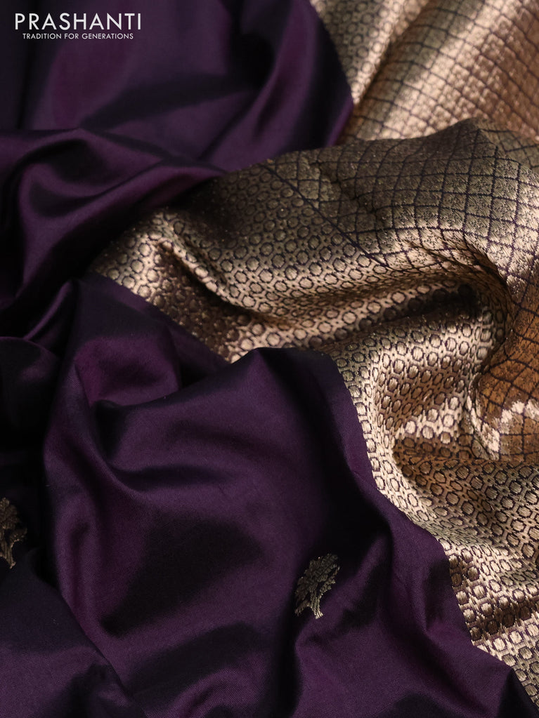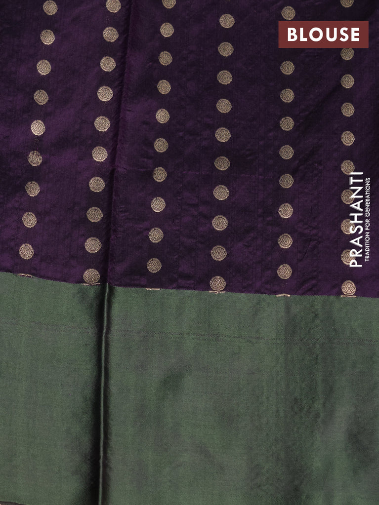 Banarasi katan silk saree deep jamun and green shade with zari woven floral buttas and zari woven butta border
