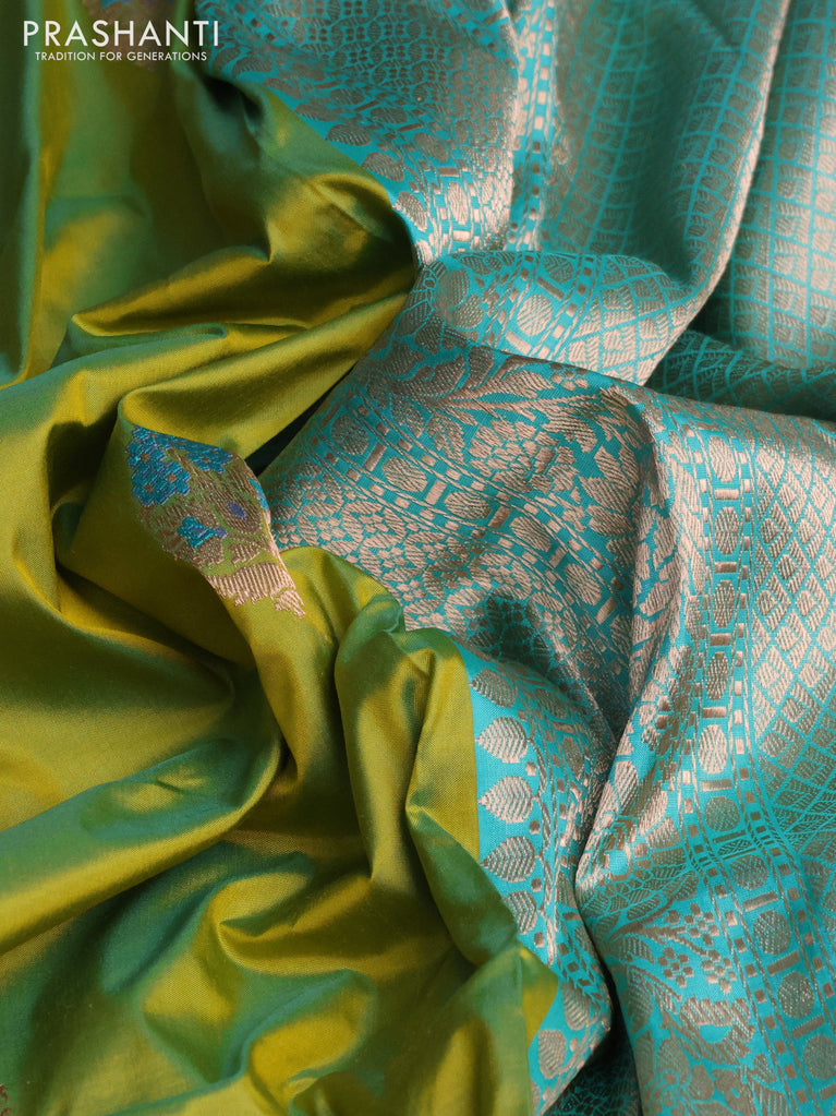 Banarasi katan silk saree light green and teal green with zari woven floral buttas and zari woven border