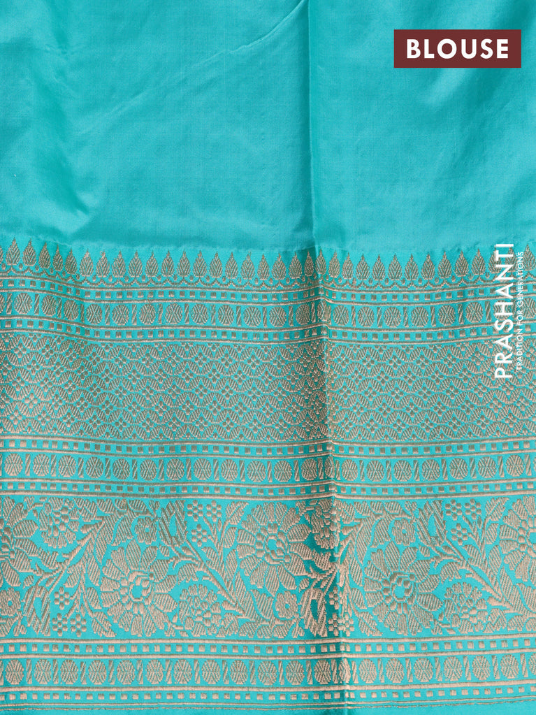 Banarasi katan silk saree dual shade of teal green and pink with zari woven floral buttas and simple border