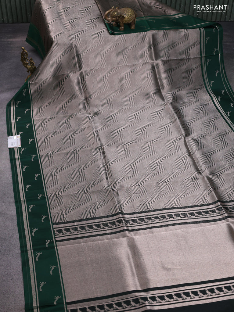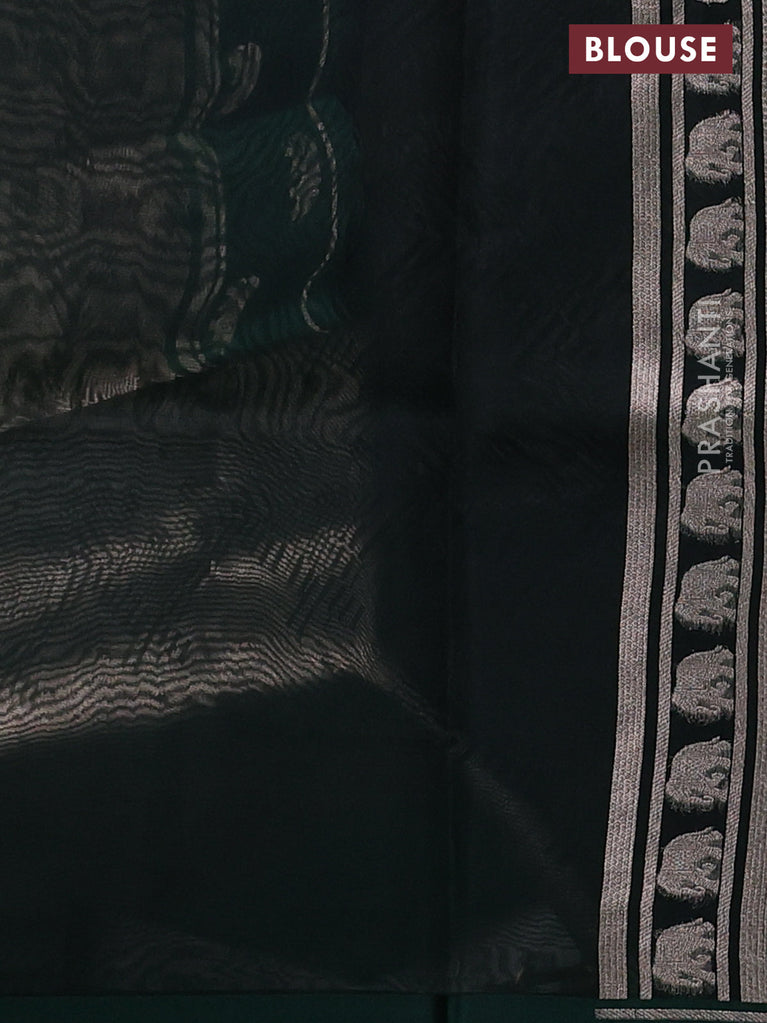 Banarasi katan silk saree green with allover silver zari woven brocade weaves and zari woven butta border