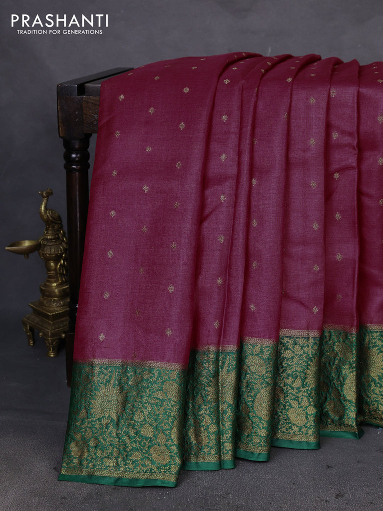 Banarasi tussar silk saree magenta pink and green with thread & zari woven buttas and woven border