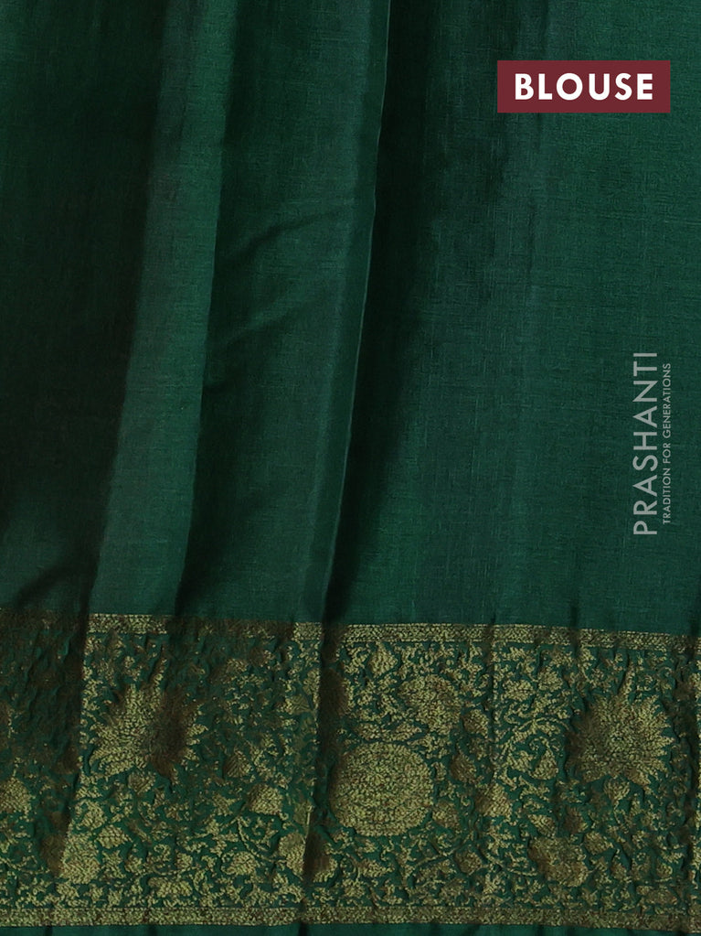 Banarasi tussar silk saree green and maroon with thread & zari woven buttas and woven border