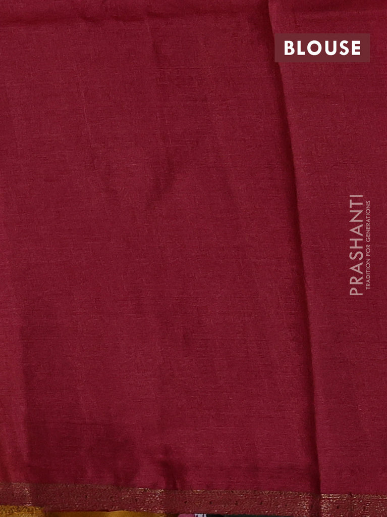 Banarasi tussar silk saree mustard yellow and maroon with thread & zari woven buttas and woven border