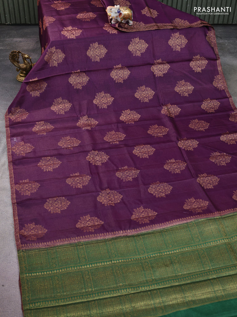 Banarasi tussar silk saree light green and purple with thread & zari woven buttas and woven border