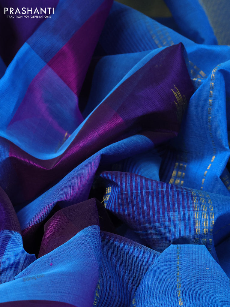 10 Yards silk cotton saree blue and cs blue with plain body and zari woven korvai border