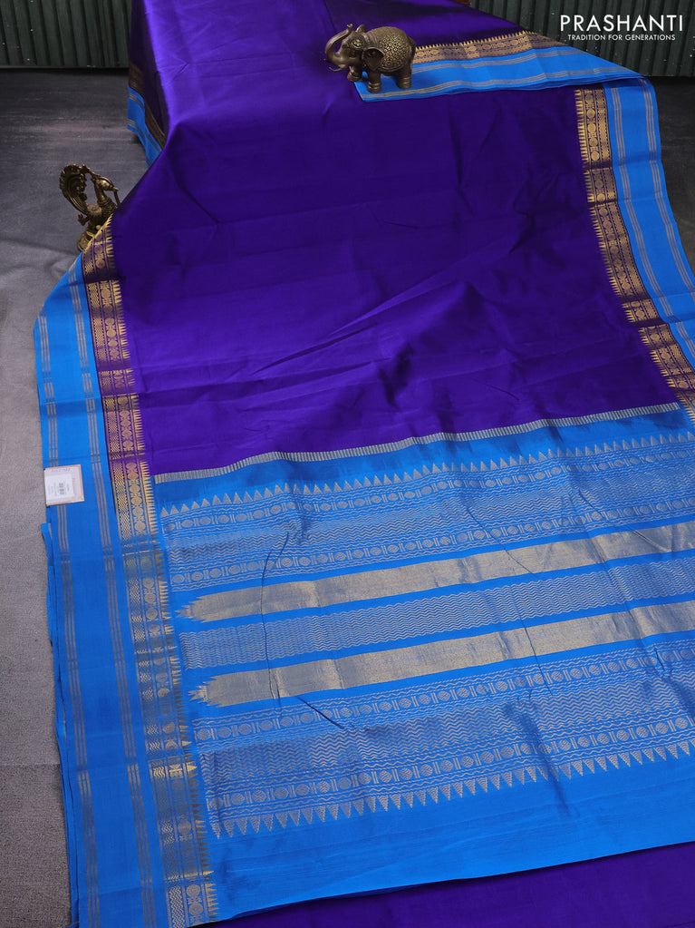 10 yards silk cotton saree deep purple and cs blue with allover paalum pazhamum checks & buttas and zari woven border