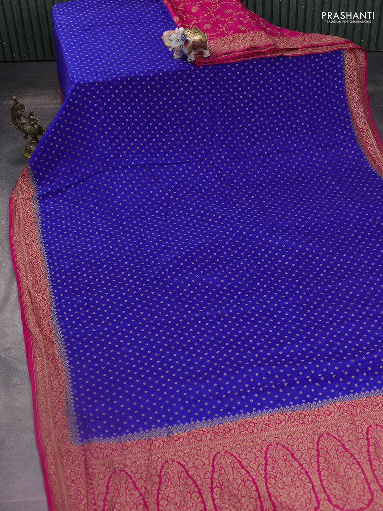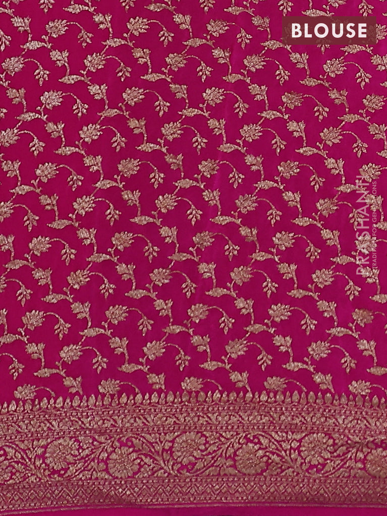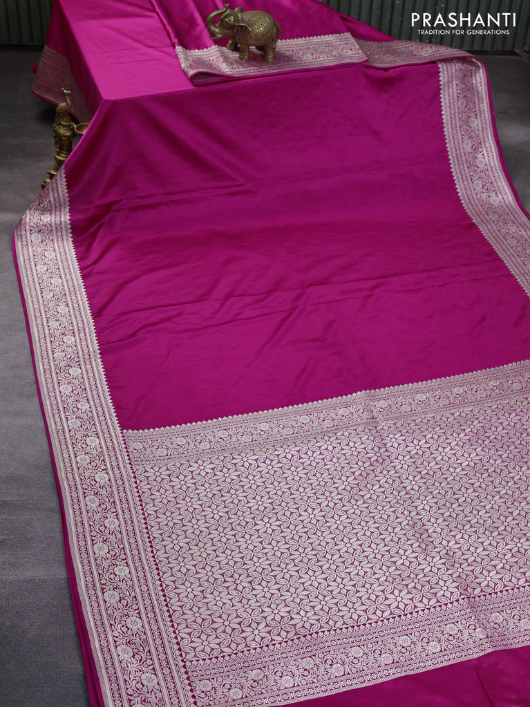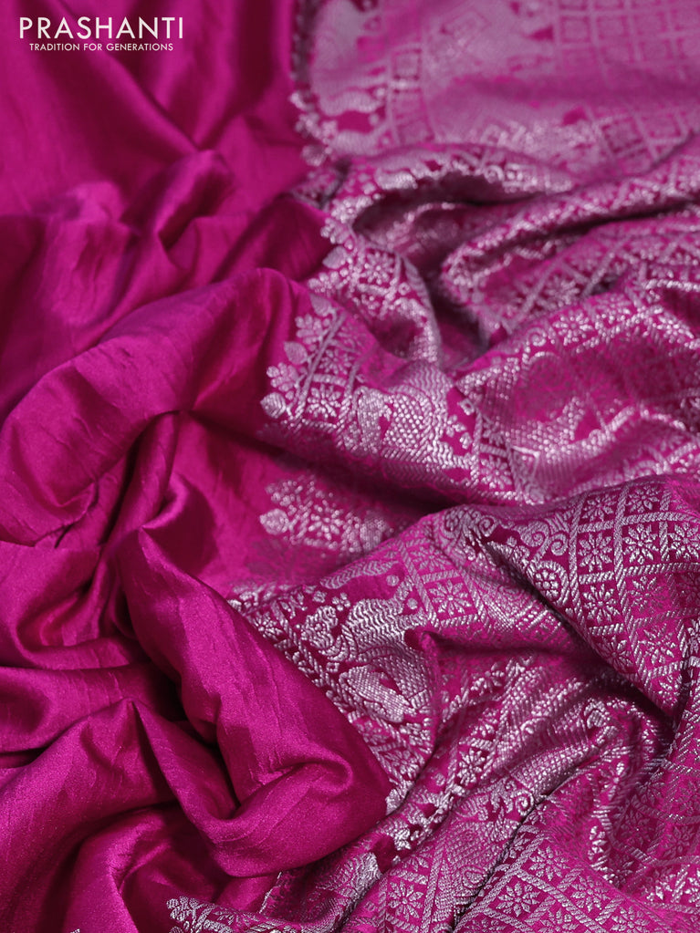 Banarasi dupion silk saree magenta pink with zari woven buttas and floral design paithani style border