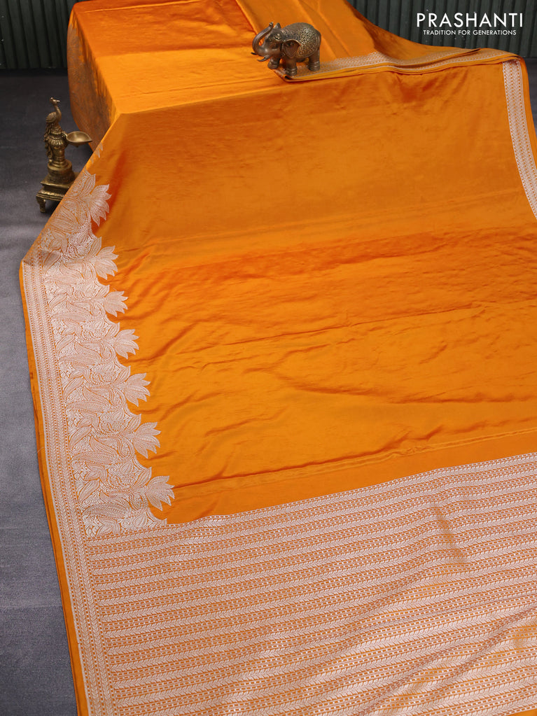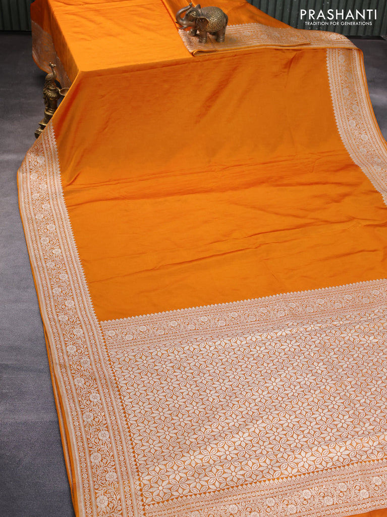 Banarasi crush crepe saree mango yellow with plain body and zari woven border