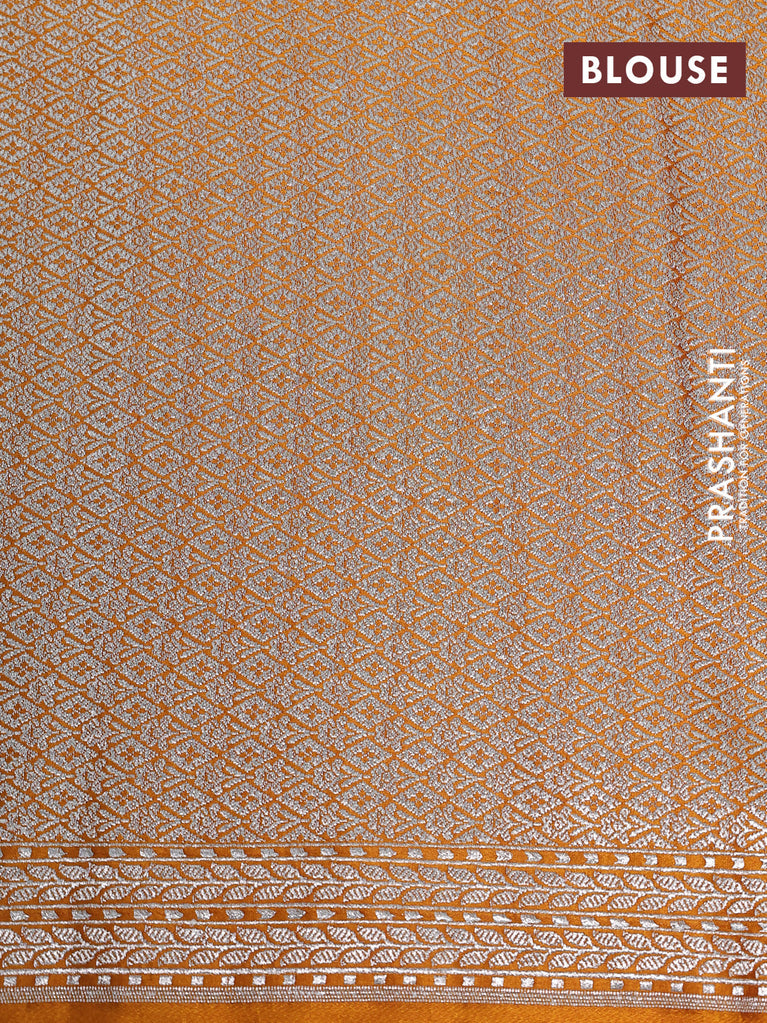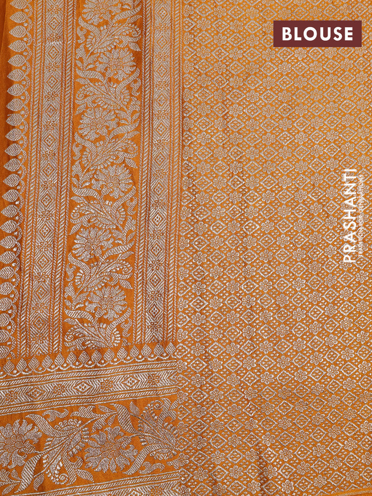 Banarasi crush crepe saree mustard yellow with plain body and silver zari woven border
