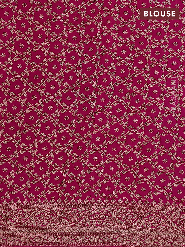 Banarasi crush crepe saree pink with plain body and zari woven border