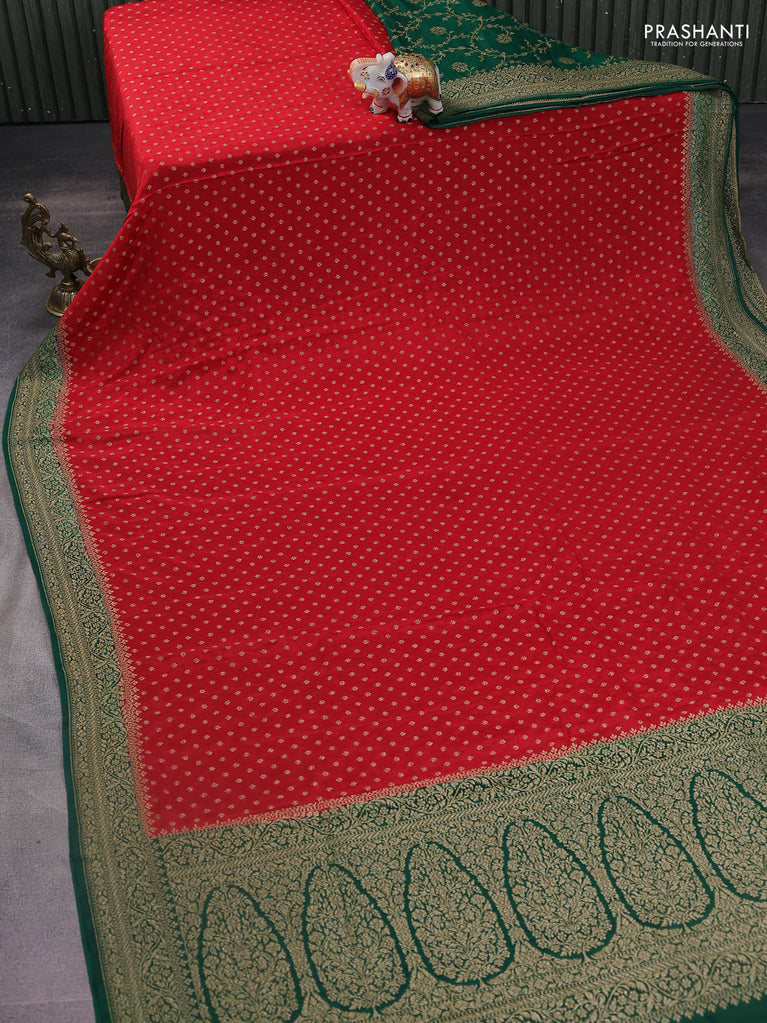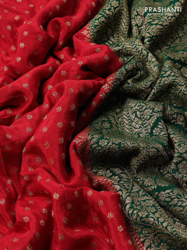 Banarasi crepe partly saree red and green with woven buttas and woven border