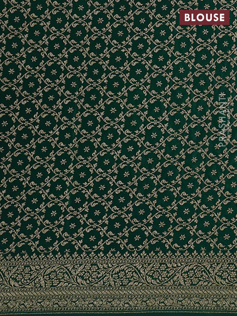 Banarasi crepe partly saree green and pink with woven buttas and woven border