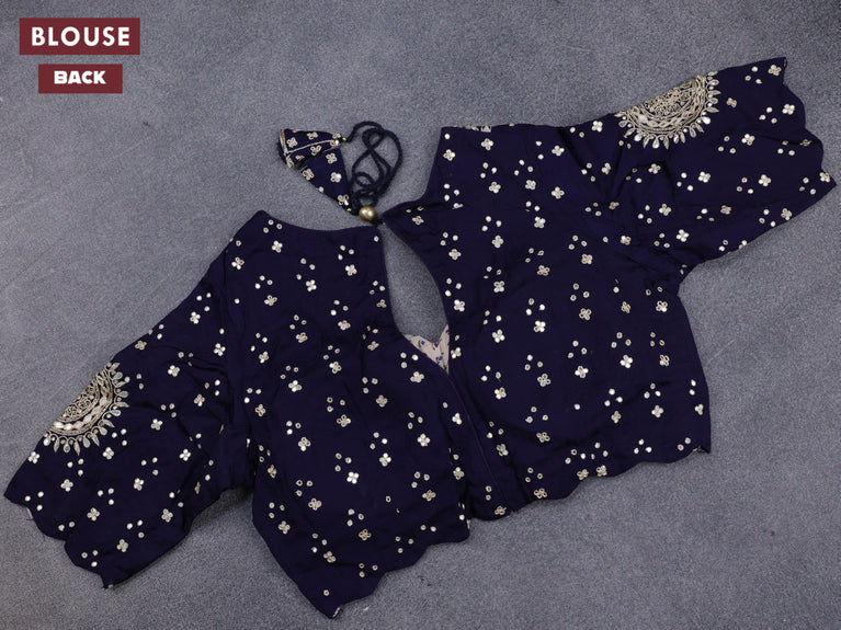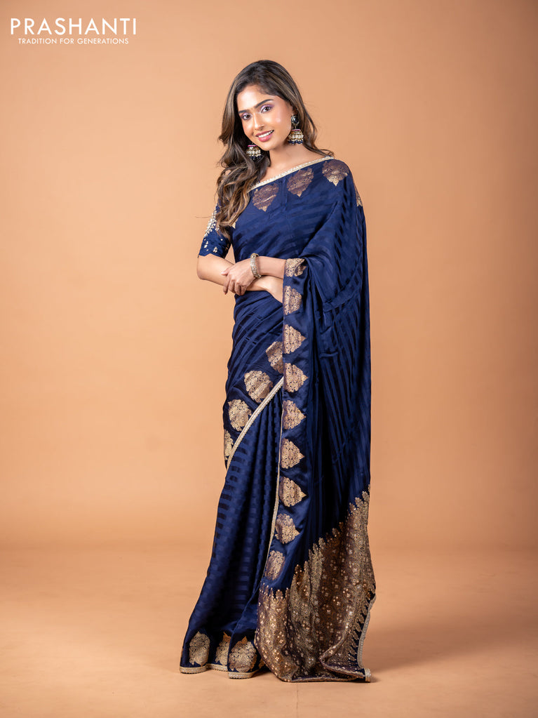 Banarasi crepe saree dark blue with stripes pattern and mirror work & banarasi style border
