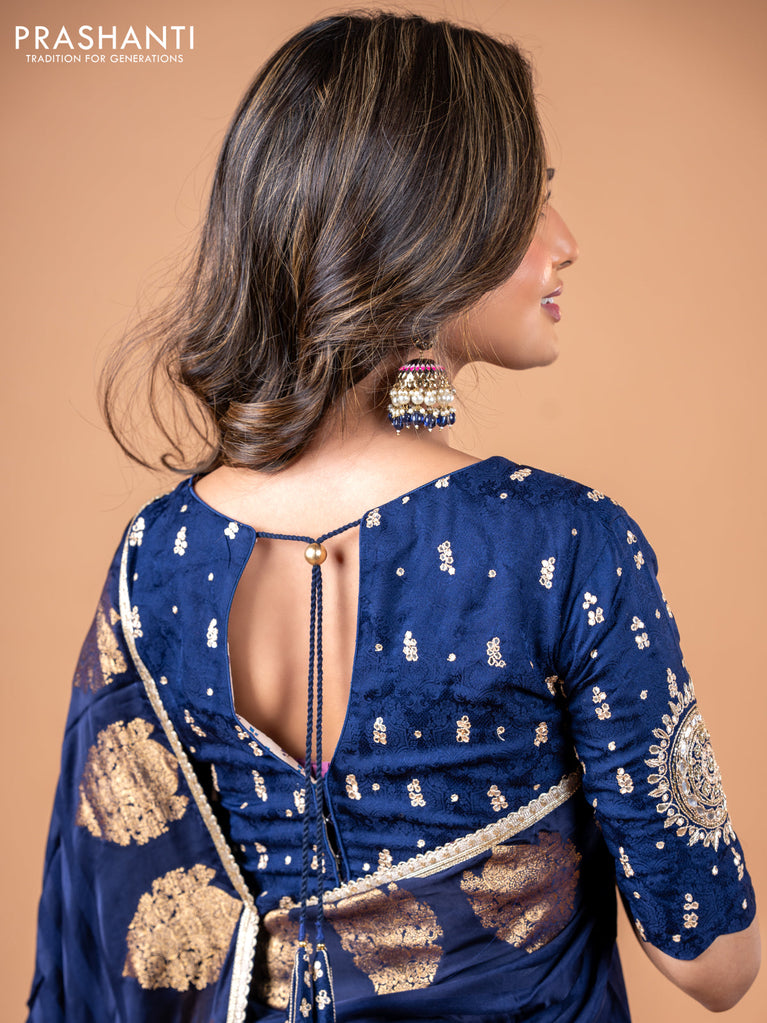 Banarasi dupion silk saree black and purple with thread & zari woven floral buttas and woven border