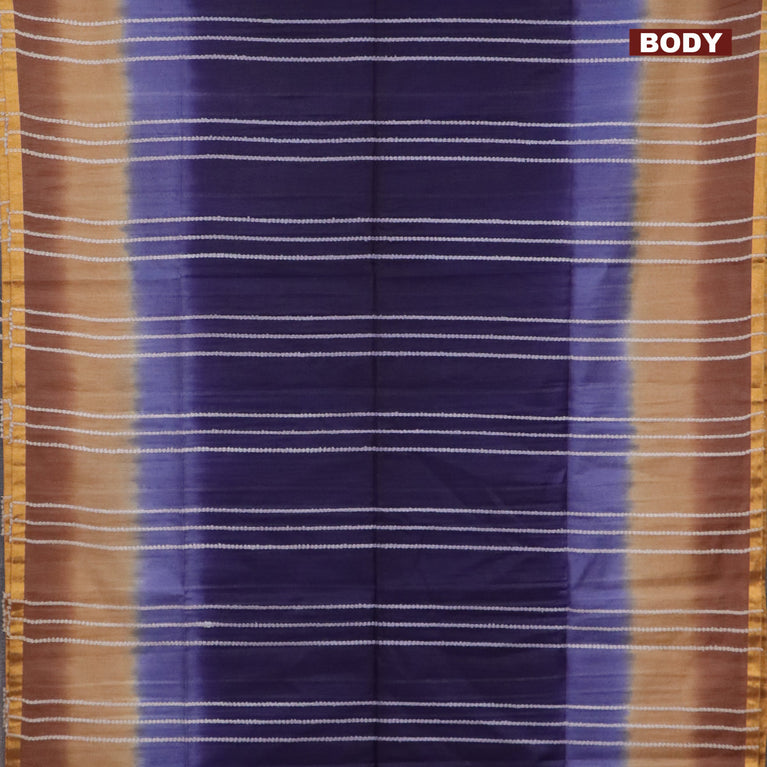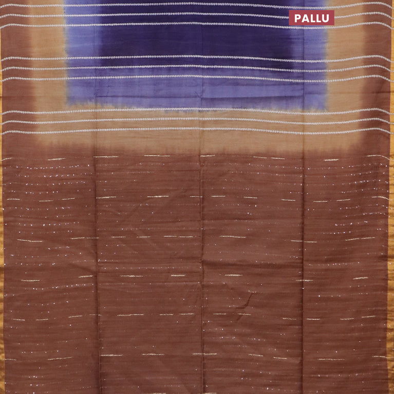 Bamboo saree navy blue and brown with allover thread weaves and sequin work pallu & zari border