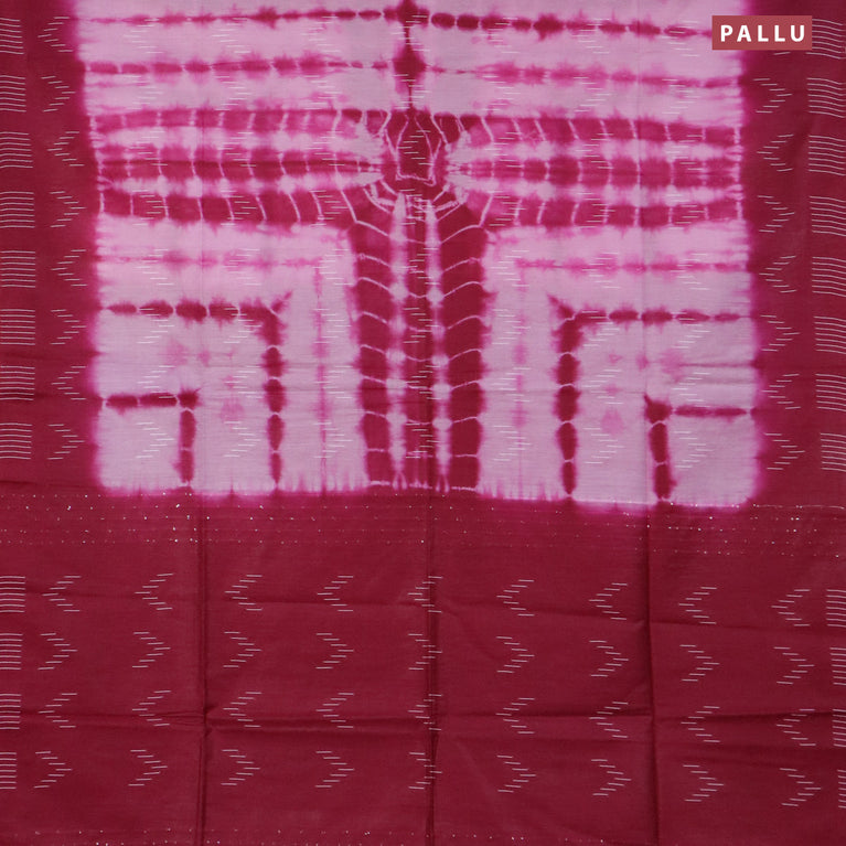Bamboo saree light pink and dark magenta with allover tie and dye & thread buttas and sequin work pallu