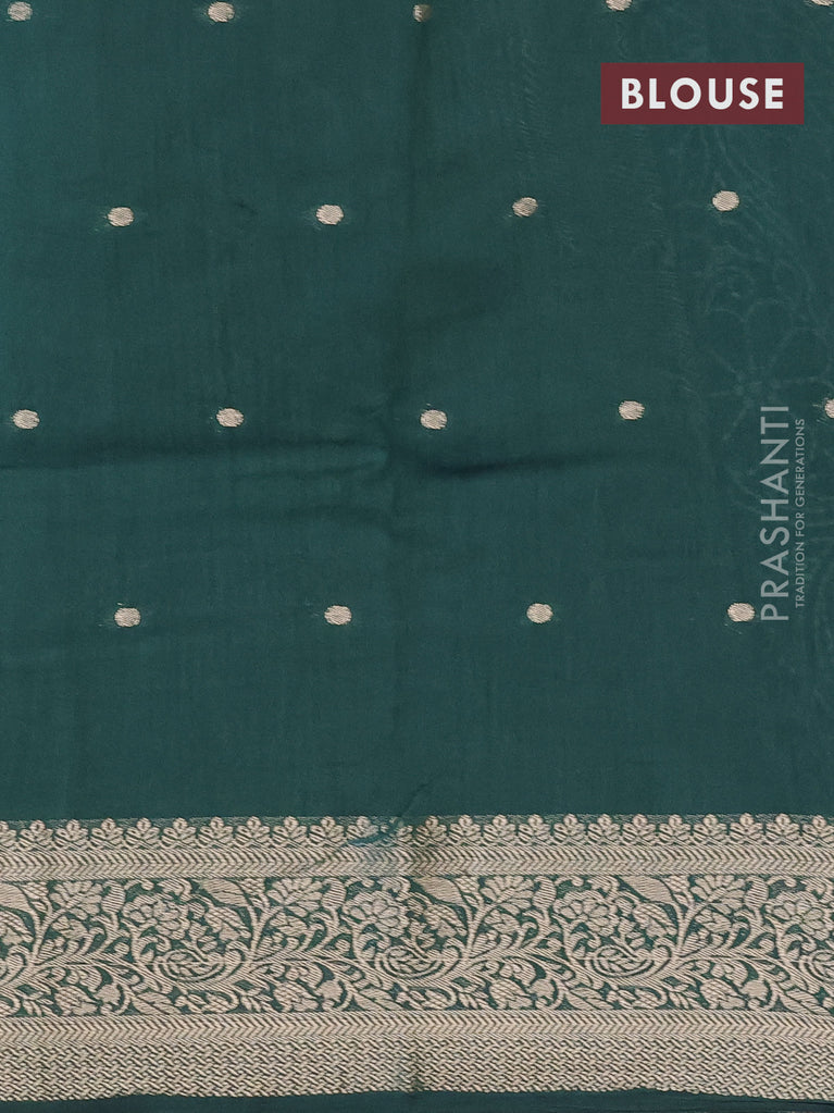 Banarasi crush crepe saree dark green with plain body and zari woven border