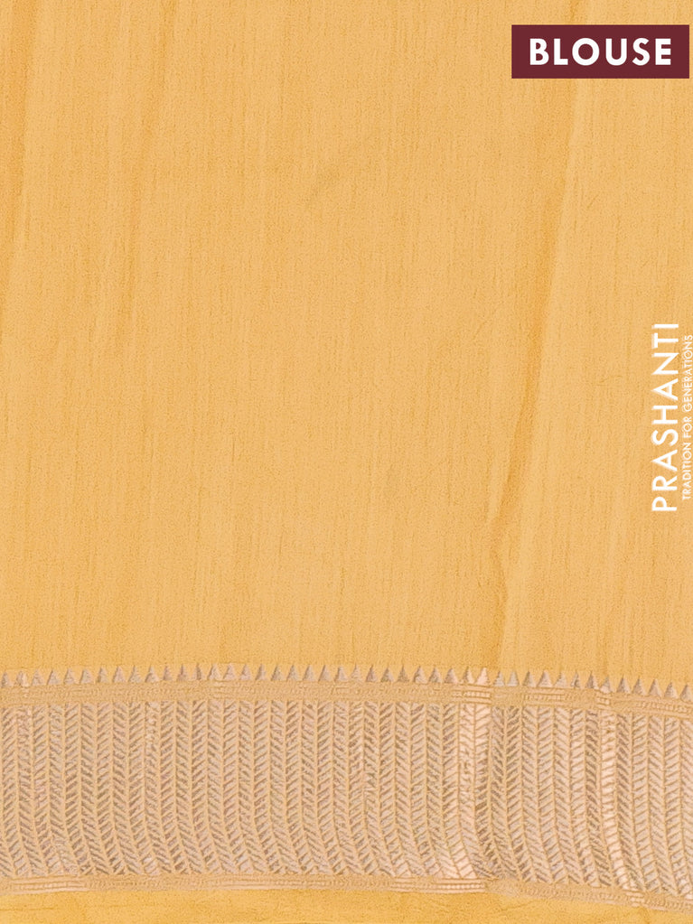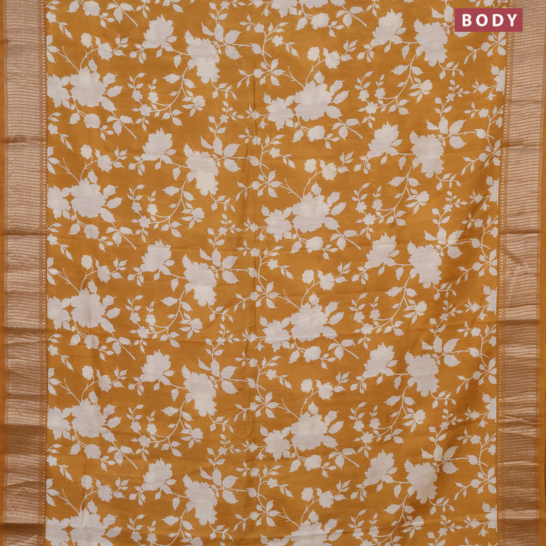 Assam silk saree mustard yellow with allover floral prints and zari woven border