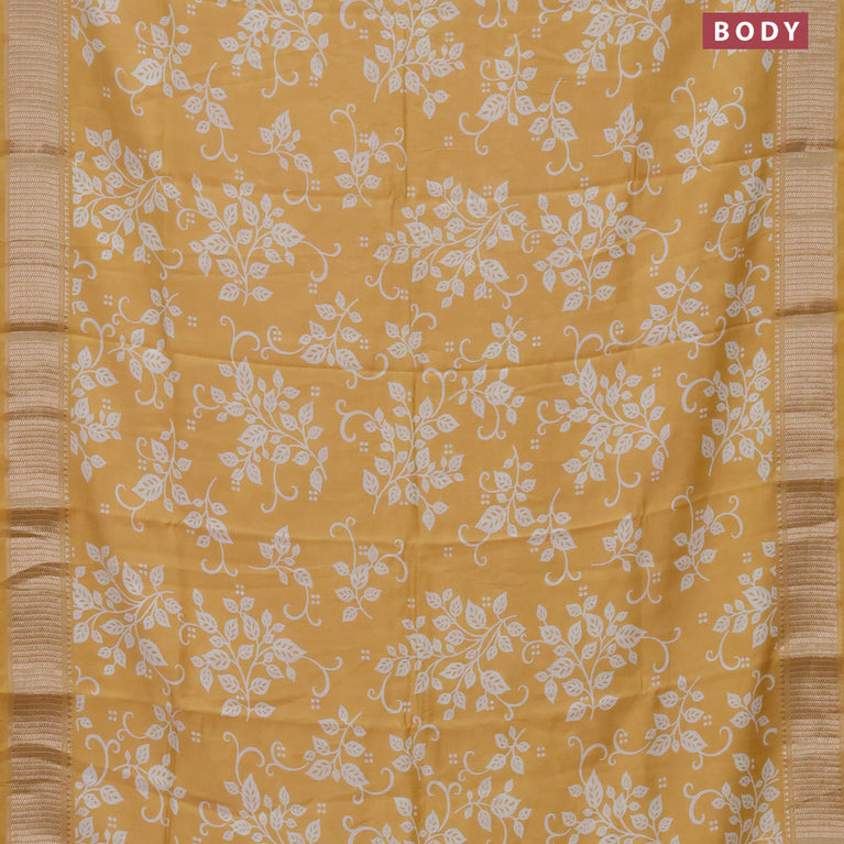 Banarasi crush crepe saree mustard yellow with plain body and zari woven border
