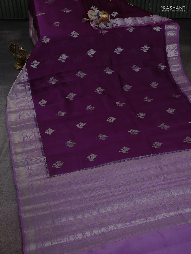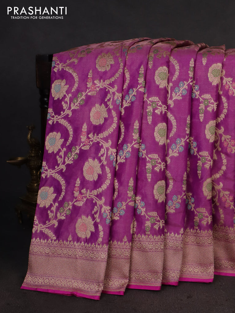 Banarasi tissue silk saree purple shade with allover zari woven brocade weaves and zari woven border
