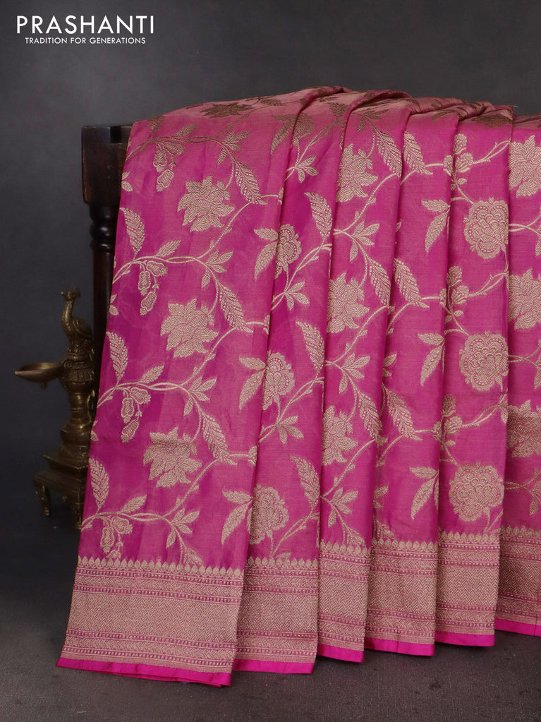 Banarasi tissue silk saree pink with allover floral zari woven brocade weaves and zari woven border