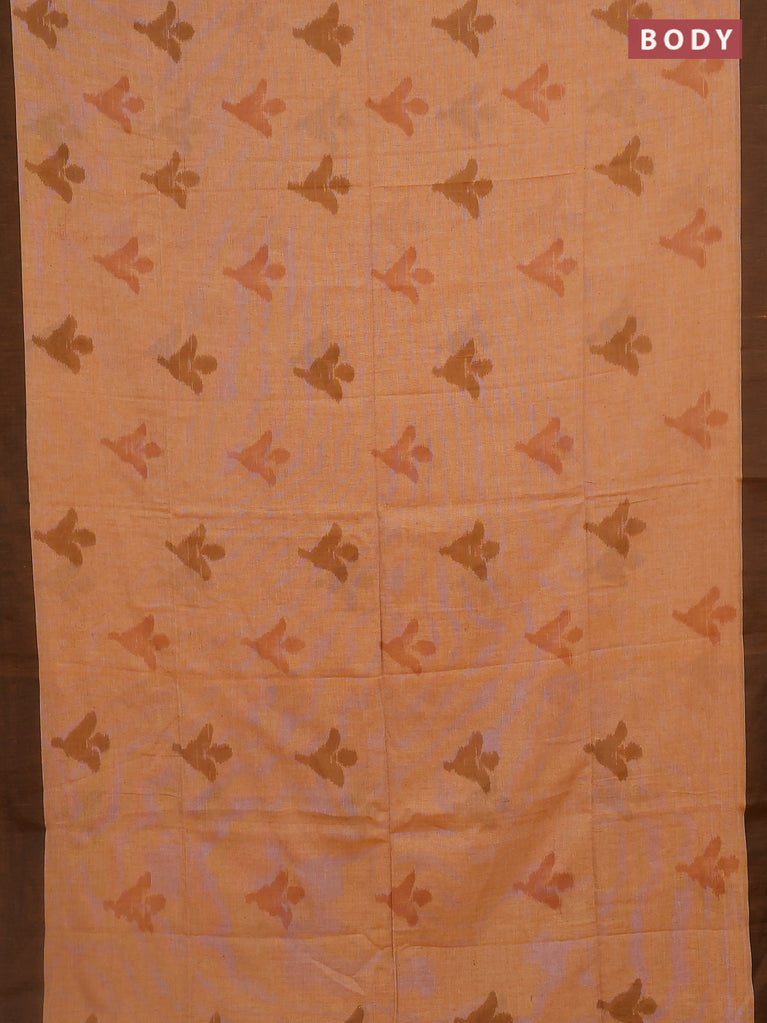 Bengal soft cotton saree dark mustard and maroon with allover butta weaves and simple border