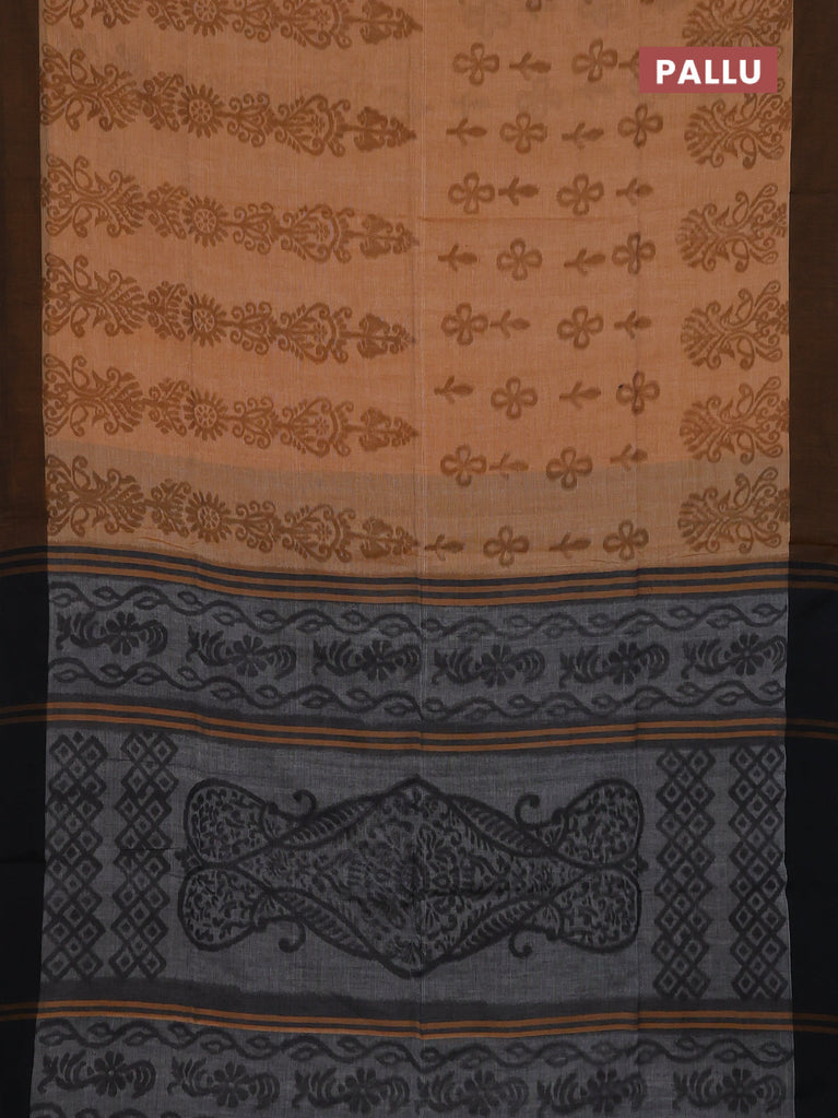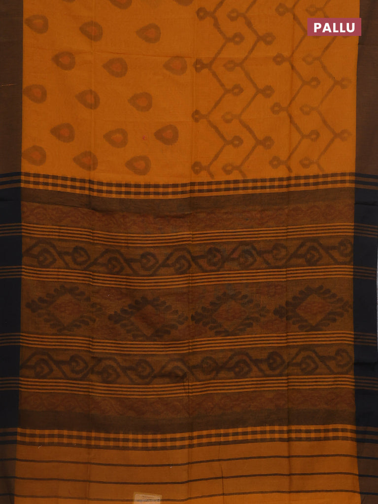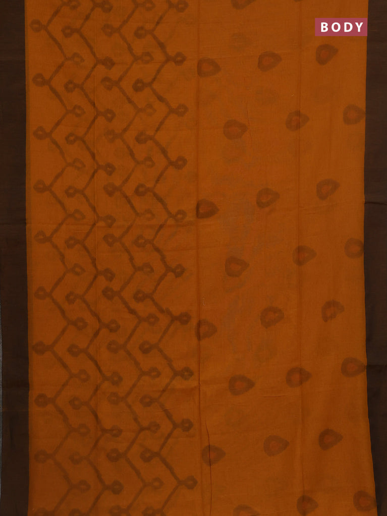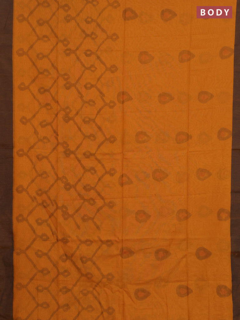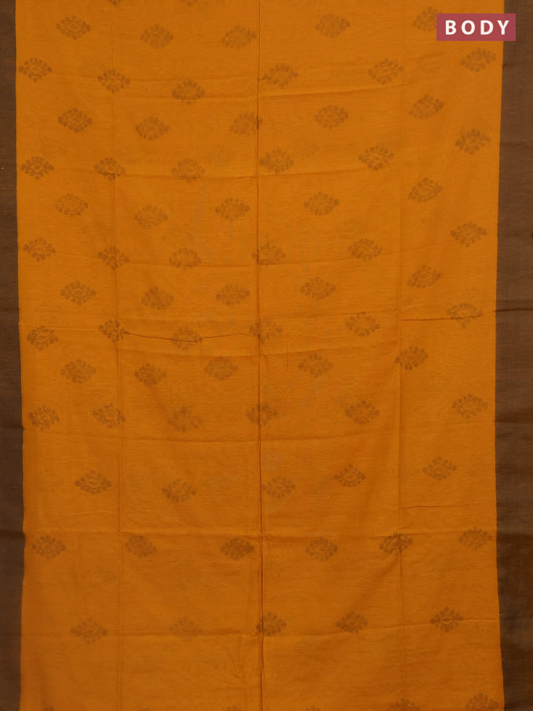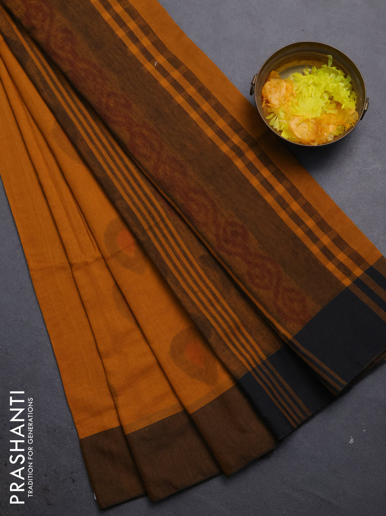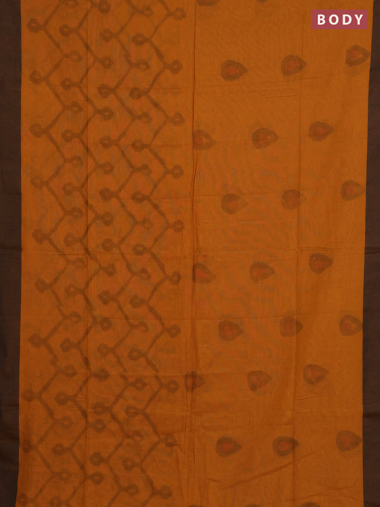 Bengal soft cotton saree dark mustard and black with allover butta weaves and simple border